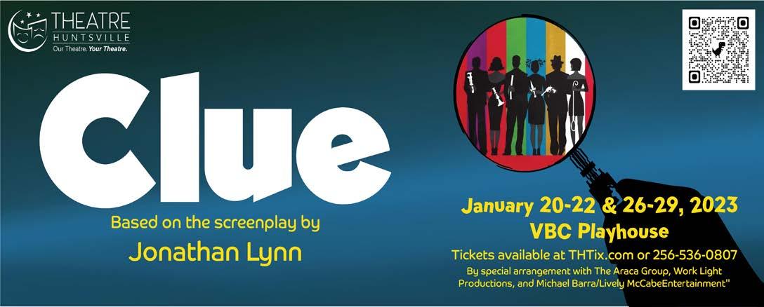 Based on the iconic 1985 Paramount movie which was inspired by the classic Hasbro board game, Clue is a hilarious farcemeets-murder mystery. The tale begins at a remote mansion, where six mysterious guests assemble for an unusual dinner party where murder and blackmail are on the menu. When their host turns up dead, they all become suspects. Led by Wadsworth – the butler, Miss Scarlett, Professor Plum, Mrs. White, Mr. Green, Mrs. Peacock and Colonel Mustard race to find the killer as the body count stacks up. Clue is the comedy whodunit that will leave both cult-fans and newcomers in stitches as they try to figure out…WHO did it, WHERE, and with WHAT! Presented by special arrangement with Broadway Licensing. Recommended for pre-teens and up.