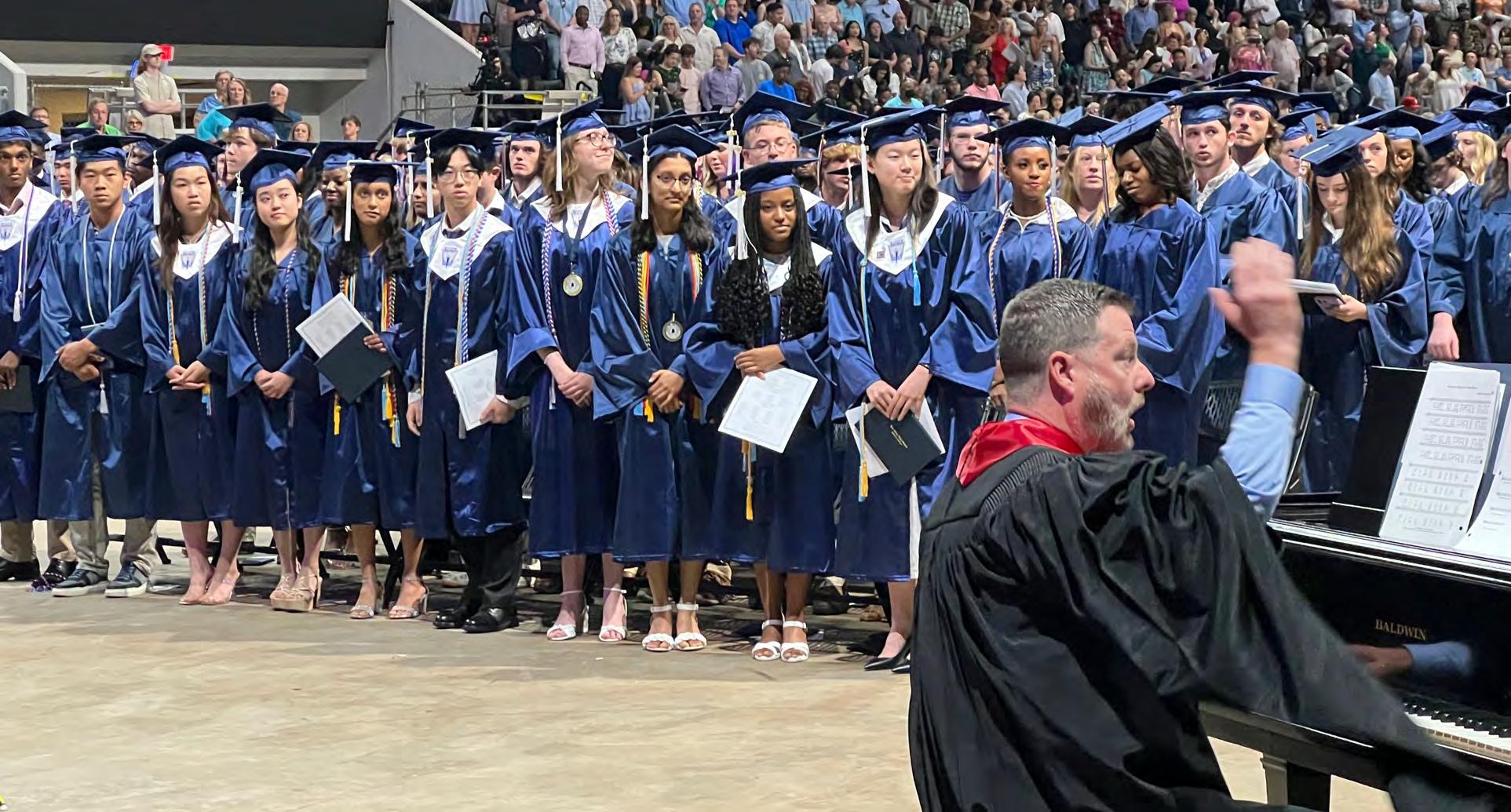 Bob Jones High School choir director Randall Fields leads the graduating class of 2023 in the singing of the school’s alma