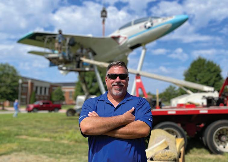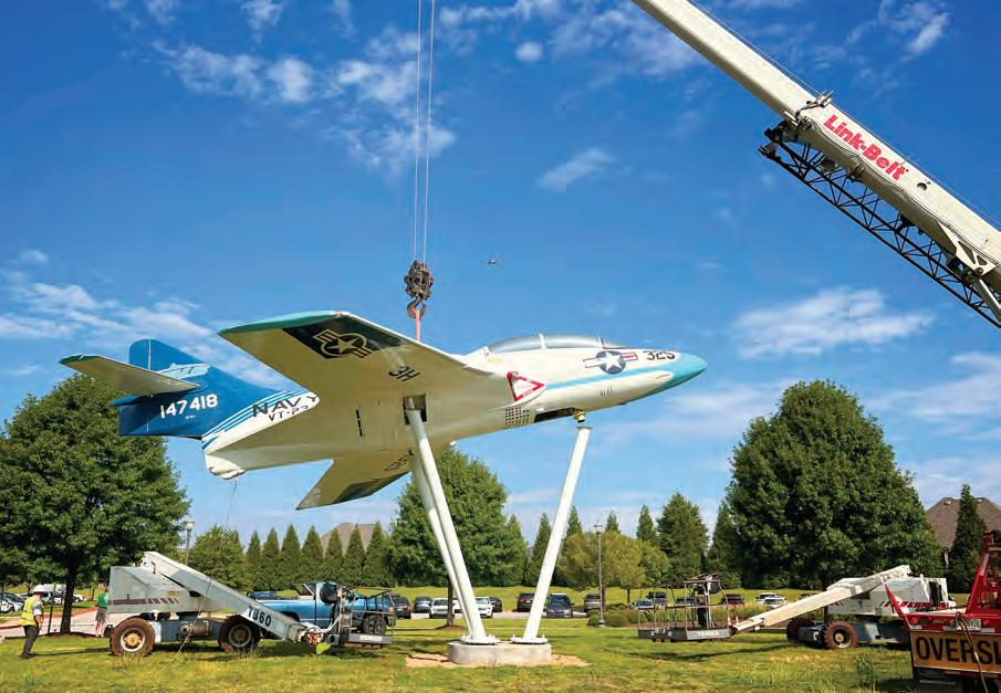 Aerospace. Members of the Highland Group crafted the base for the aircraft and performed the lifting of the jet and welded it into place at last week’s installation.