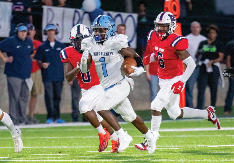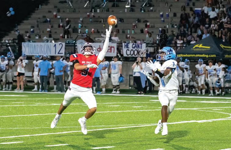 The pigskin twirled down the field toward James Clemens receiver Devon Cooper who had a Bob Jones defensive back on his hip.