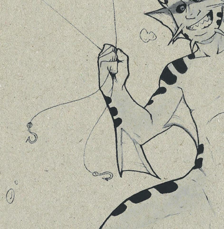 Então ela mergulhou e deslizou em direção ao anzol. No entanto, Charía foi mais rápido: pescou a Lua e a matou com um bastão de madeira. Depois, ele a levou para casa como se fosse um pescado para comer com sua mulher.