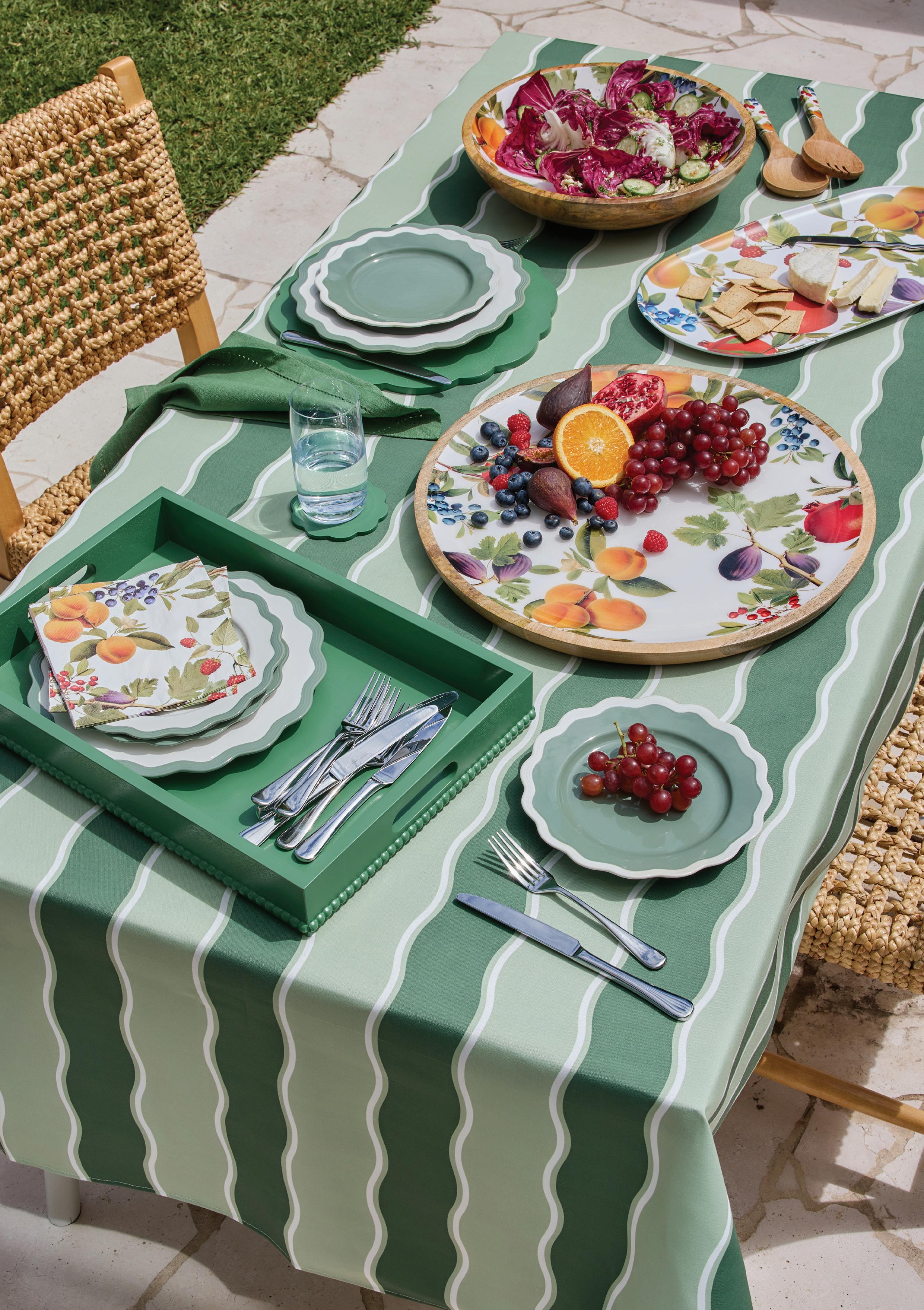 KIT WAVY DARK GREEN/ LIGHT GREEN ALFRESCO TABLECLOTH 140X250CM (2) POLYESTER