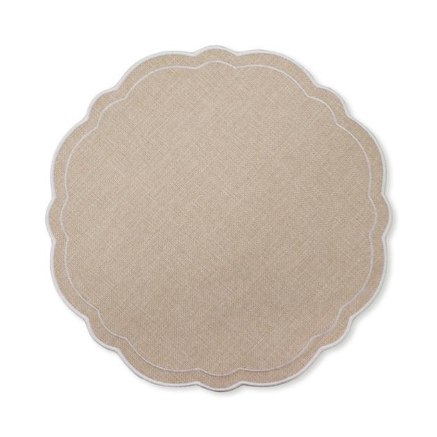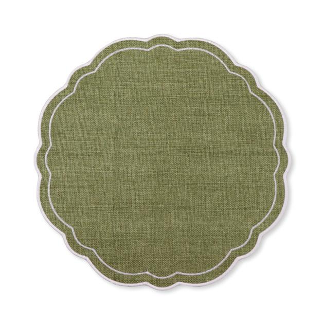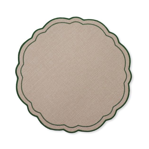 XM26178 CLAUDIA LIGHT NATURAL/ GREEN SCALLOPED ROUND PLACEMAT D33CM (12) POLYESTER