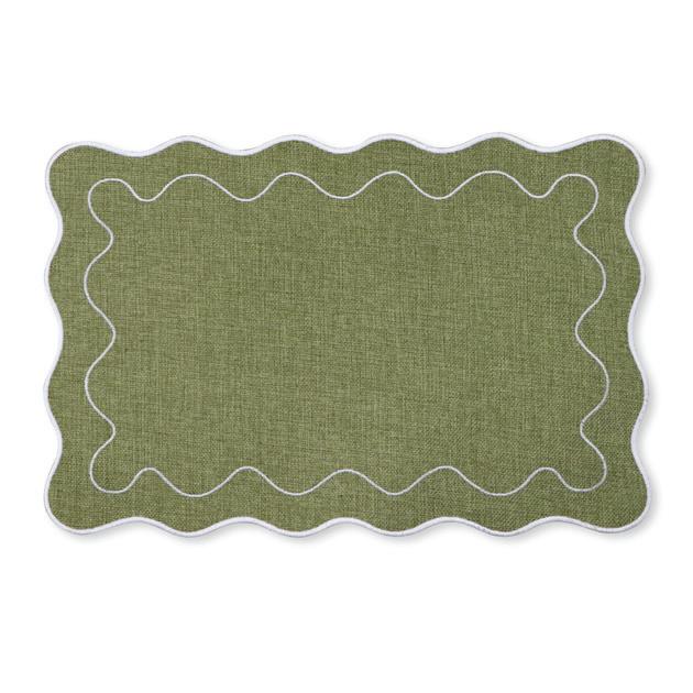XM26181 CLAUDIA GREEN/ WHITE SCALLOPED RECTANGLE PLACEMAT 35X45CM (12) POLYESTER
