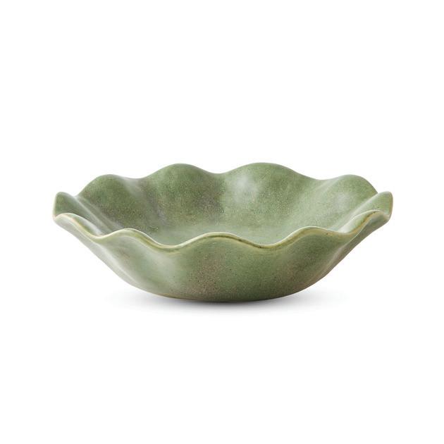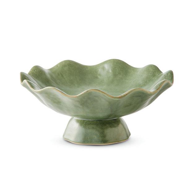 XM26154 WAVY GREEN REACTIVE PEDESTAL BOWL D32XH15CM (2) CERAMIC