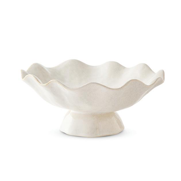 XM26158 WAVY IVORY REACTIVE PEDESTAL PLATTER D32XH15CM (2) CERAMIC