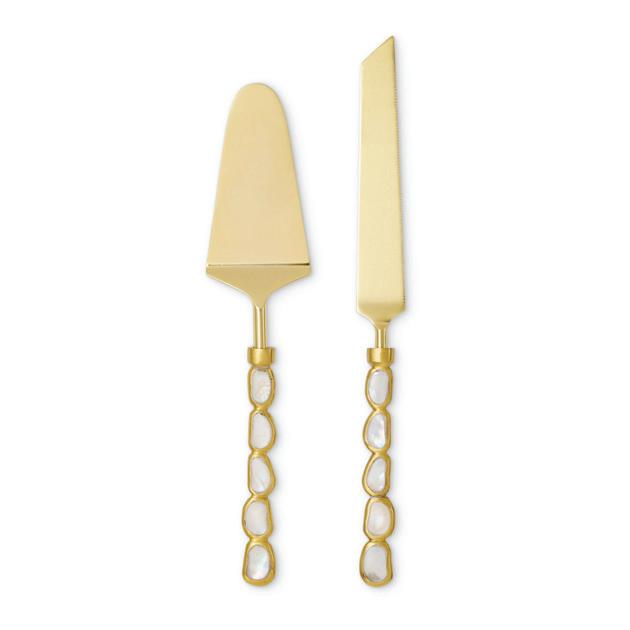 XM26171 STELLA MOTHER OF PEARL CAKE KNIFE SET CAKE SERVER 27X5X2CM CAKE KNIFE L30X2.5X1CM (4) STAINLESS STEEL/BRASS/MOTHER OF PEARL