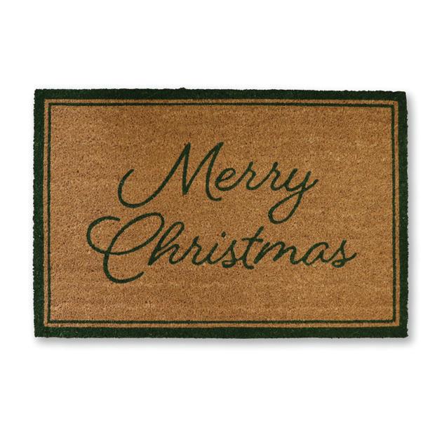 XM26110 MERRY CHRISTMAS GREEN DOORMAT 60X90CM (2) NATURAL COIR WITH NATURAL LATEX BACKING