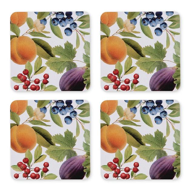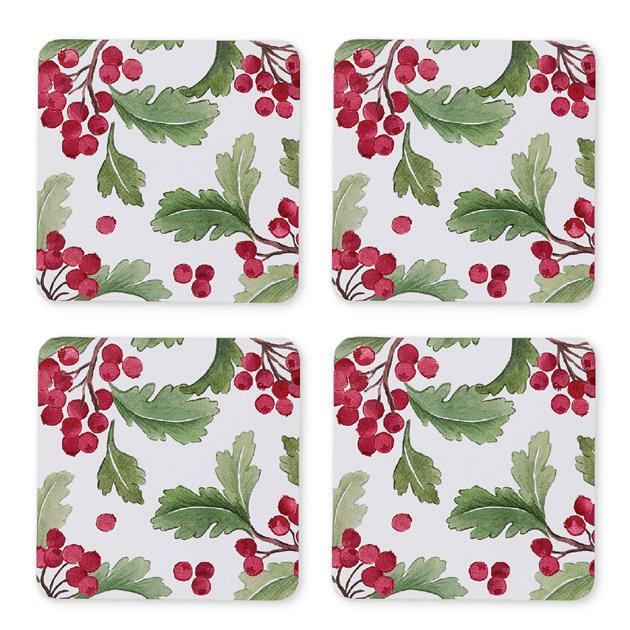 XM26094 FESTIVE HARVEST SQUARE HARD COASTER SET 4 D10CM (3) COATED MDF WITH CORK