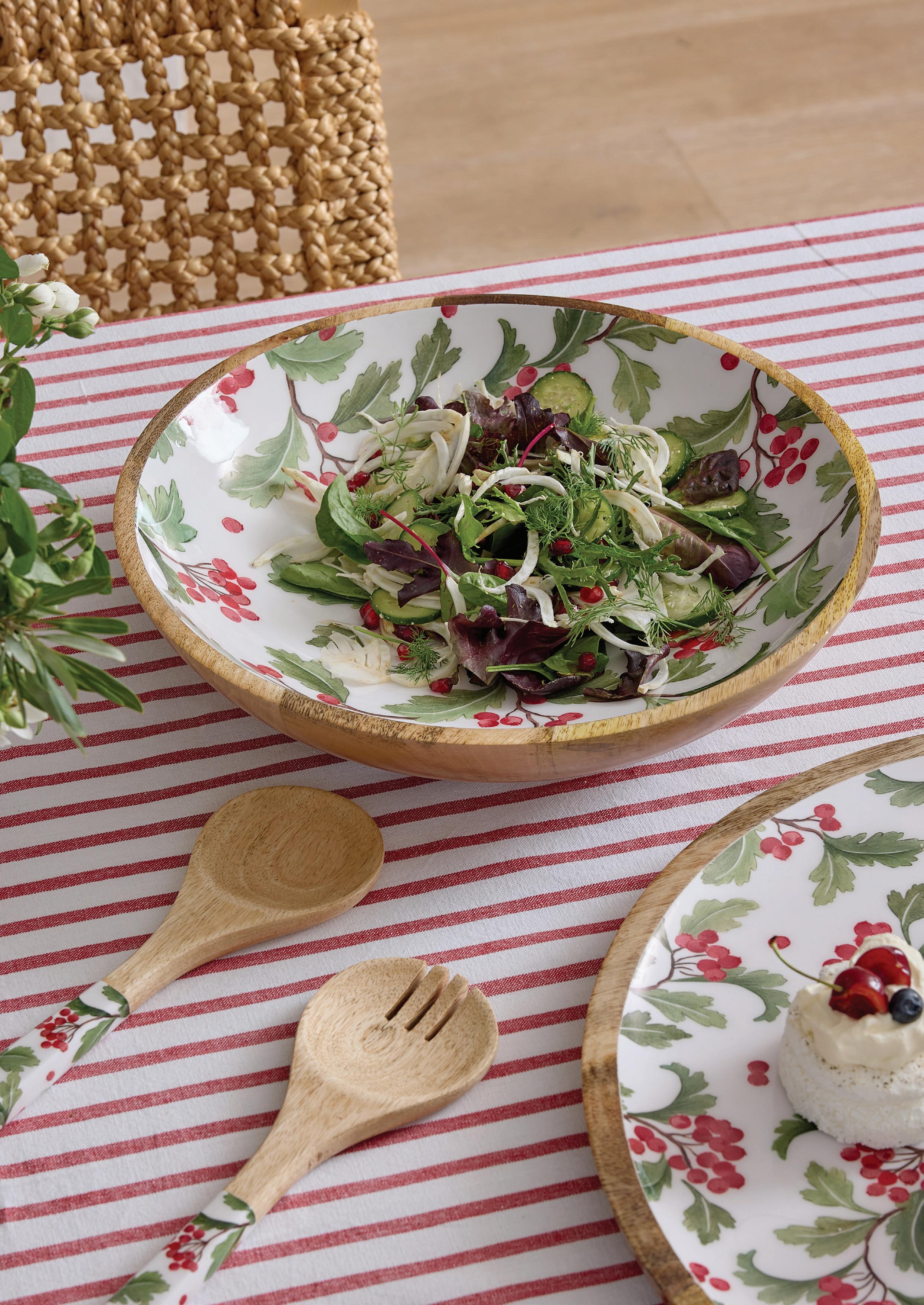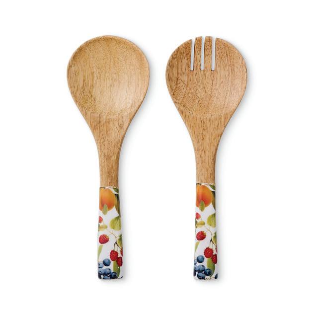 XM26056 FIG ENAMEL SALAD SERVER SET 9X24CM (4) MANGO WOOD WITH ENAMEL