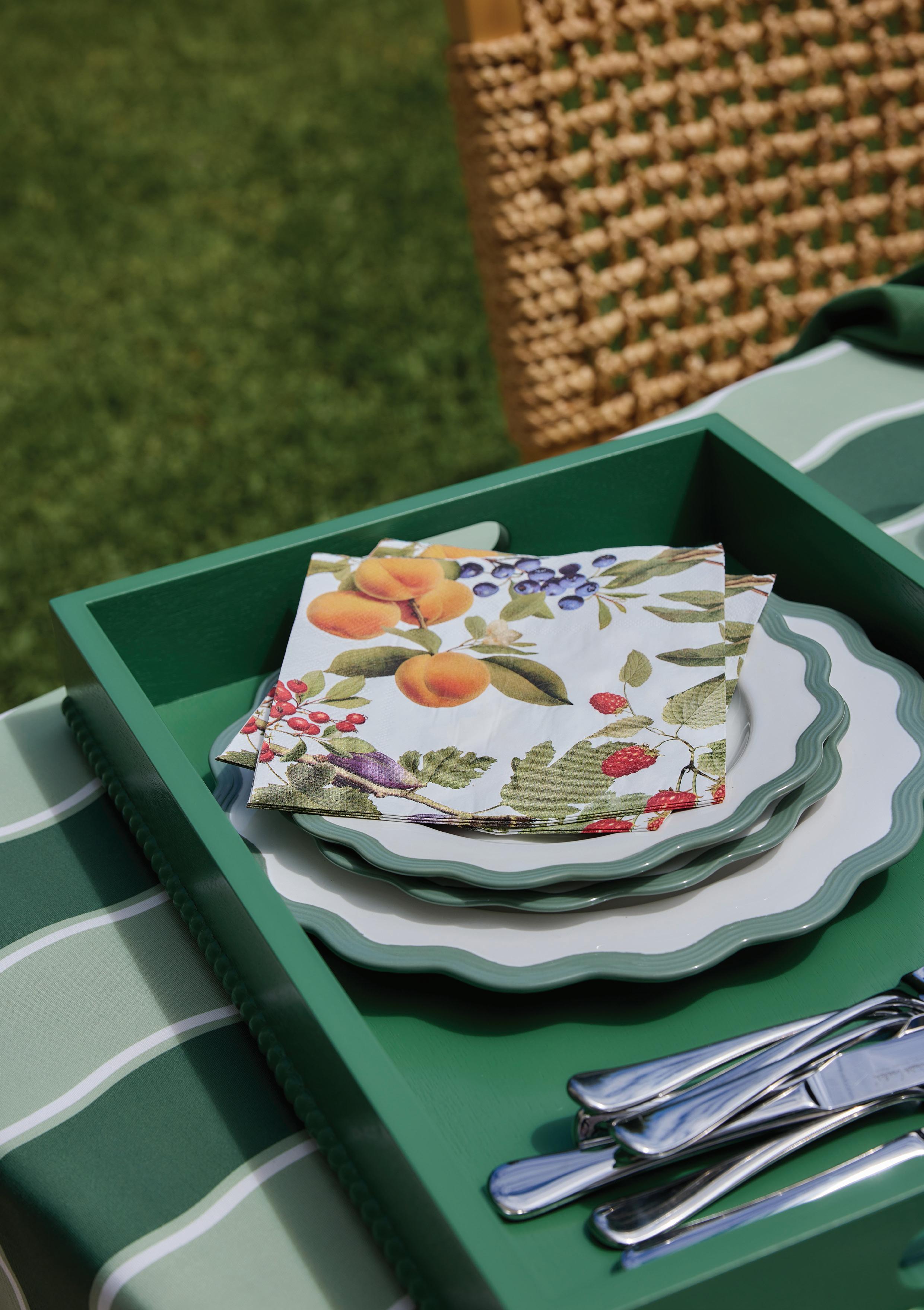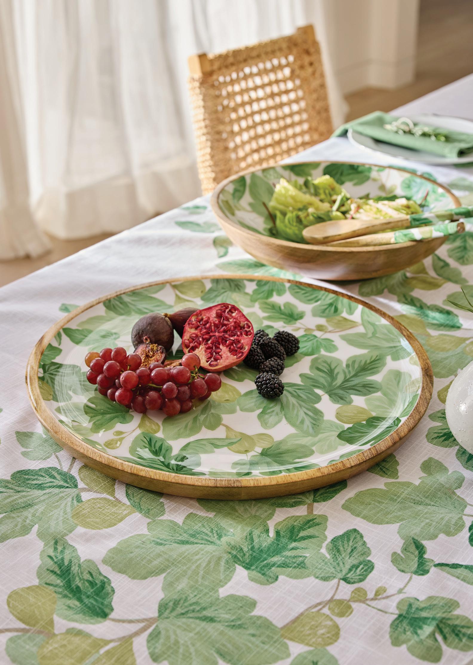 CECILE WHITE/GREEN MELAMINE LARGE PLATE D28X2CM (6) MELAMINE