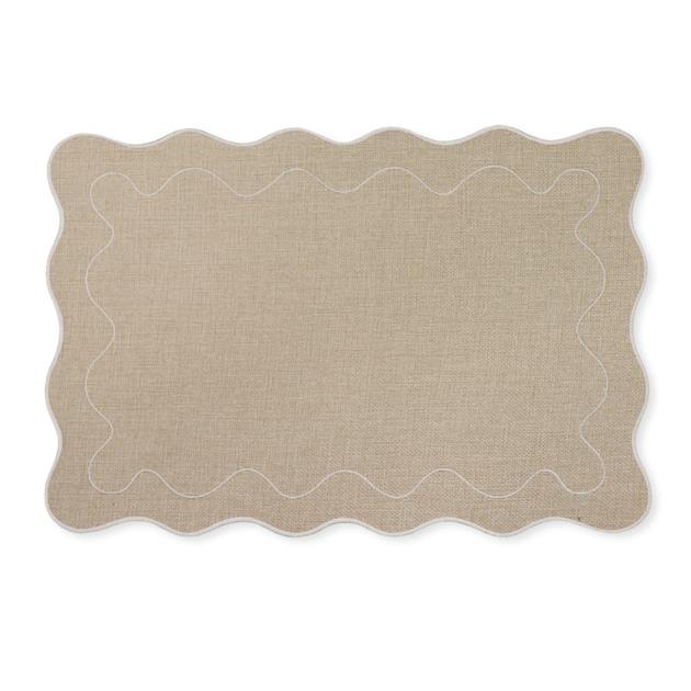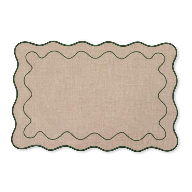 XM26183 CLAUDIA LIGHT NATURAL/ GREEN SCALLOPED RECTANGLE PLACEMAT 35X45CM (12) POLYESTER