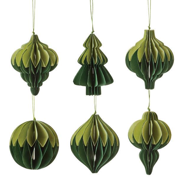 XM26032 NATALIA PAPER DARK GREEN/ LIGHT GREEN ASSORTED DECORATION SET 10CM (8) PAPER