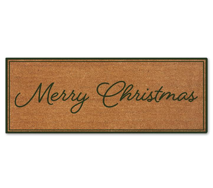 XM26195 MERRY CHRISTMAS GREEN DOORMAT 45X120CM (2) NATURAL COIR WITH NATURAL LATEX BACKING