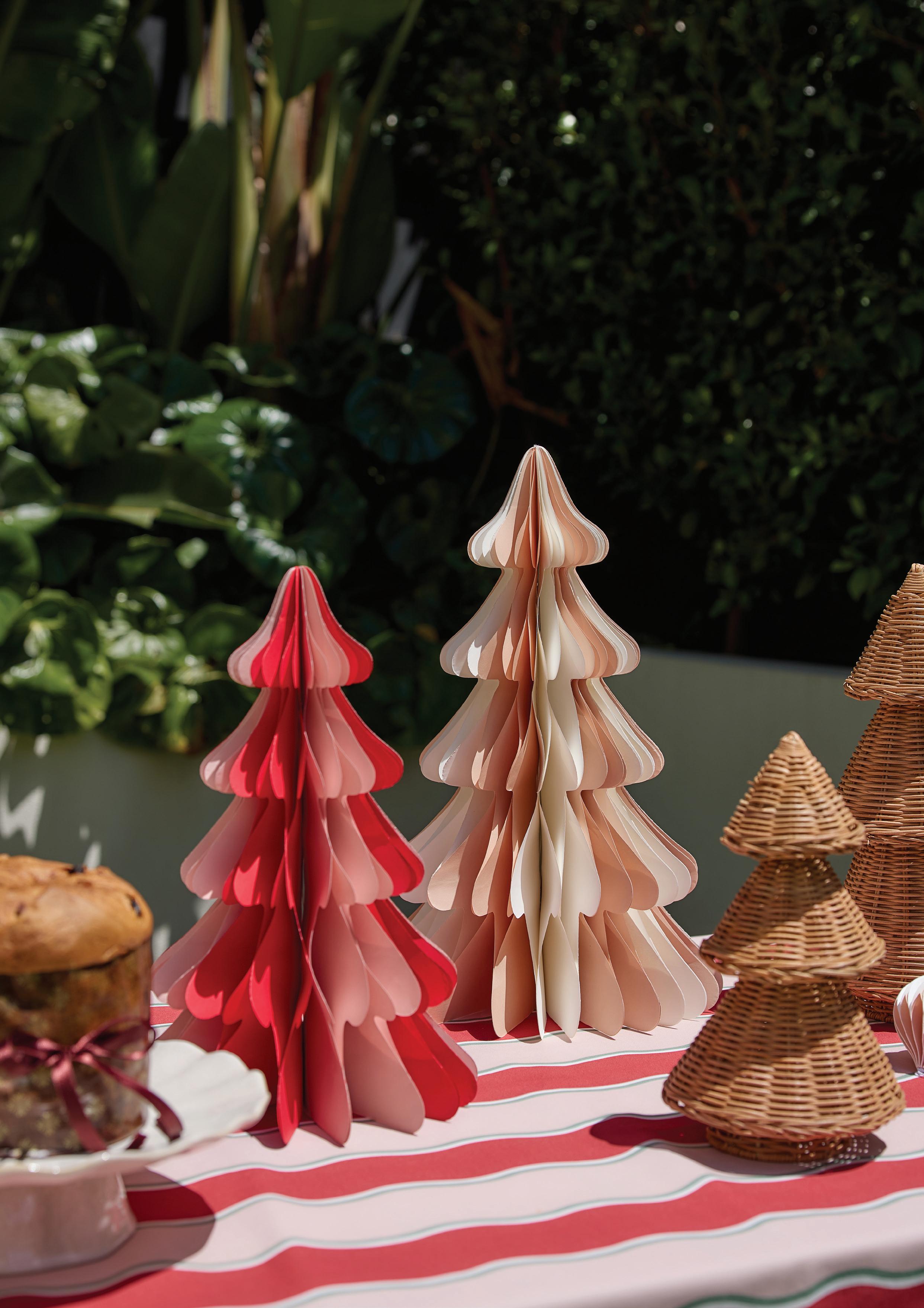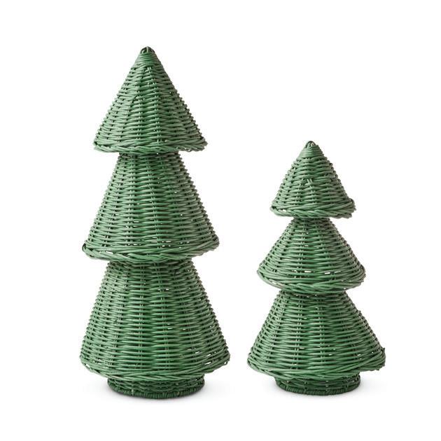 XM26169 RATTAN PINE TREE GREEN SET LRG D17XH39CM / SML D15XH28CM (2) RATTAN