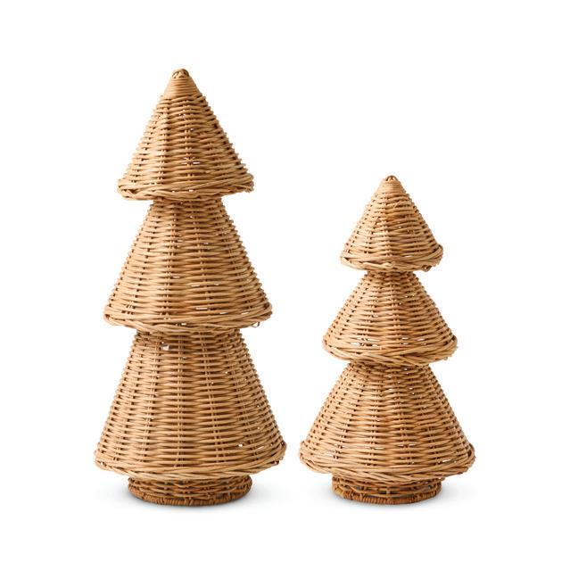 XM26168 RATTAN PINE TREE NATURAL SET LRG D17XH39CM / SML D15XH28CM (2) RATTAN