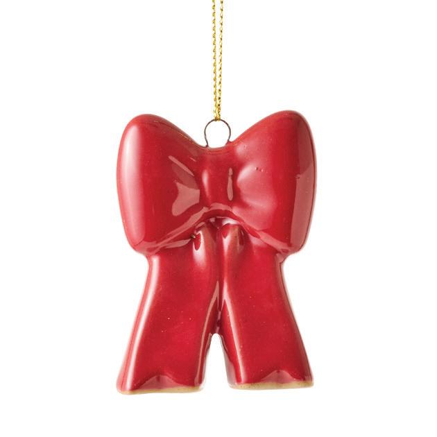 BOW RED CERAMIC HANGING DECORATION 5X2.5X7CM (6) CERAMIC