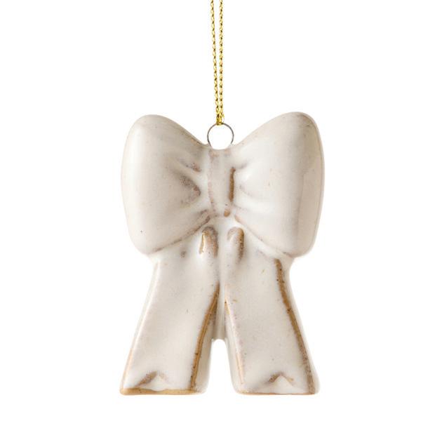 BOW IVORY REACTIVE CERAMIC HANGING DECORATION 5X2.5X7CM (6) CERAMIC