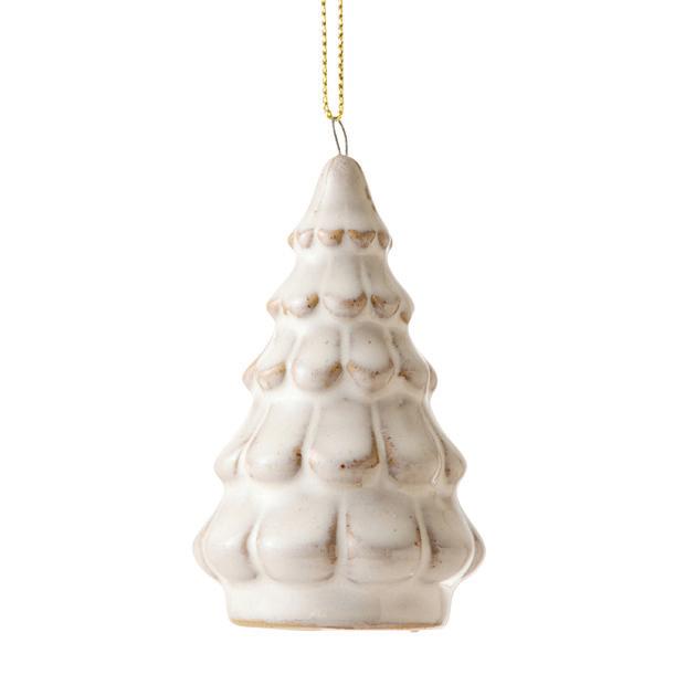 XM26124 FIR TREE IVORY REACTIVE CERAMIC HANGING DECORATION D4.5X7CM (6) CERAMIC