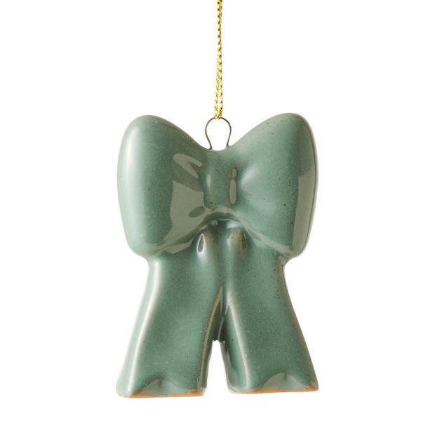 BOW GREEN CERAMIC HANGING DECORATION 5X2.5X7CM (6) CERAMIC