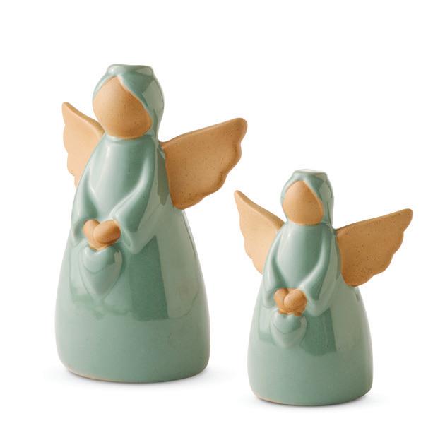 ANGEL GREEN DECOR SET LRG 11X7X14CM SML 10X5.5X11CM (4) CERAMIC
