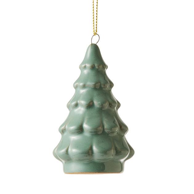XM26122 FIR TREE GREEN CERAMIC HANGING DECORATION D4.5X7CM (6) CERAMIC
