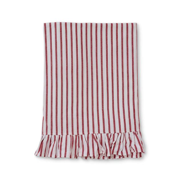 XM26016 TILLY RED STRIPE FRILLED TABLECLOTH 150X300CM (2) COTTON