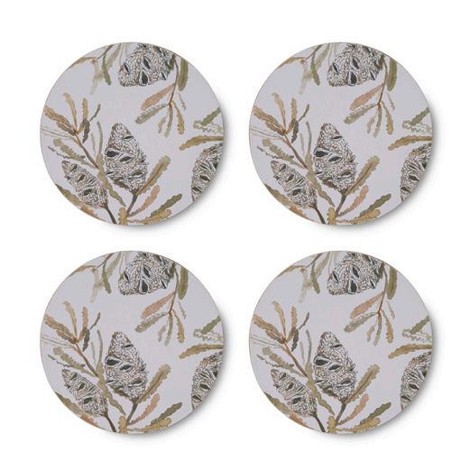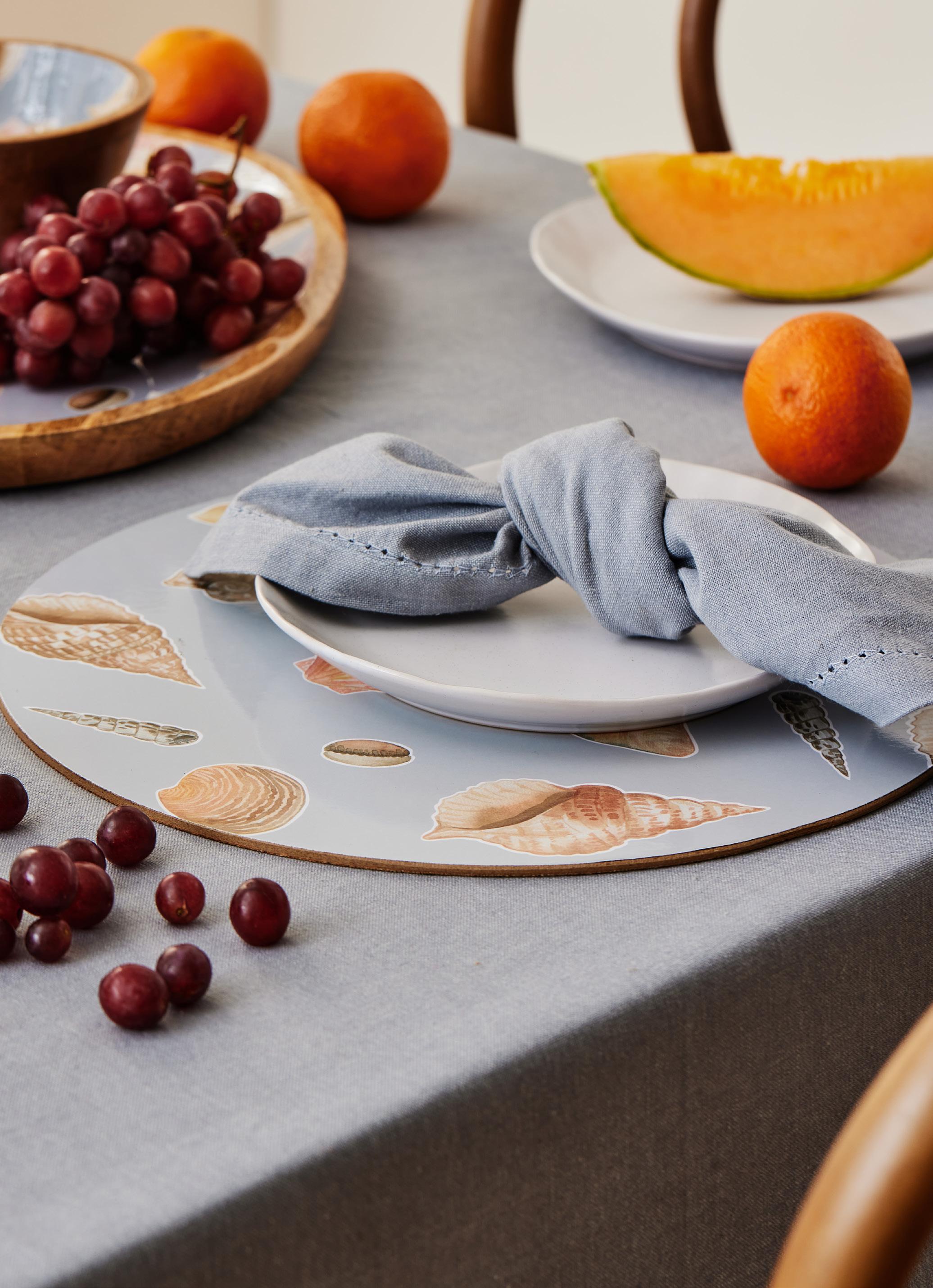 24W045 SHELLY BEACH ROUND PLACEMAT SET 4 D33CM (3) COATED MDF WITH CORK