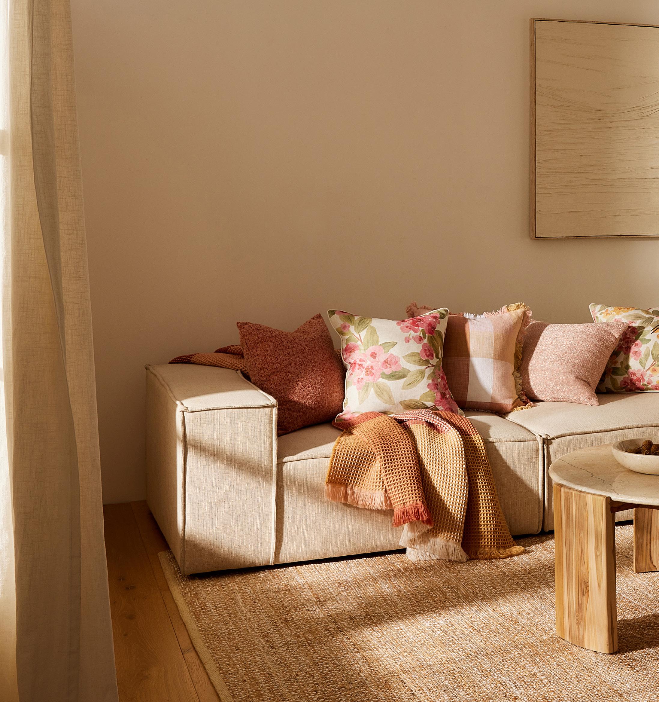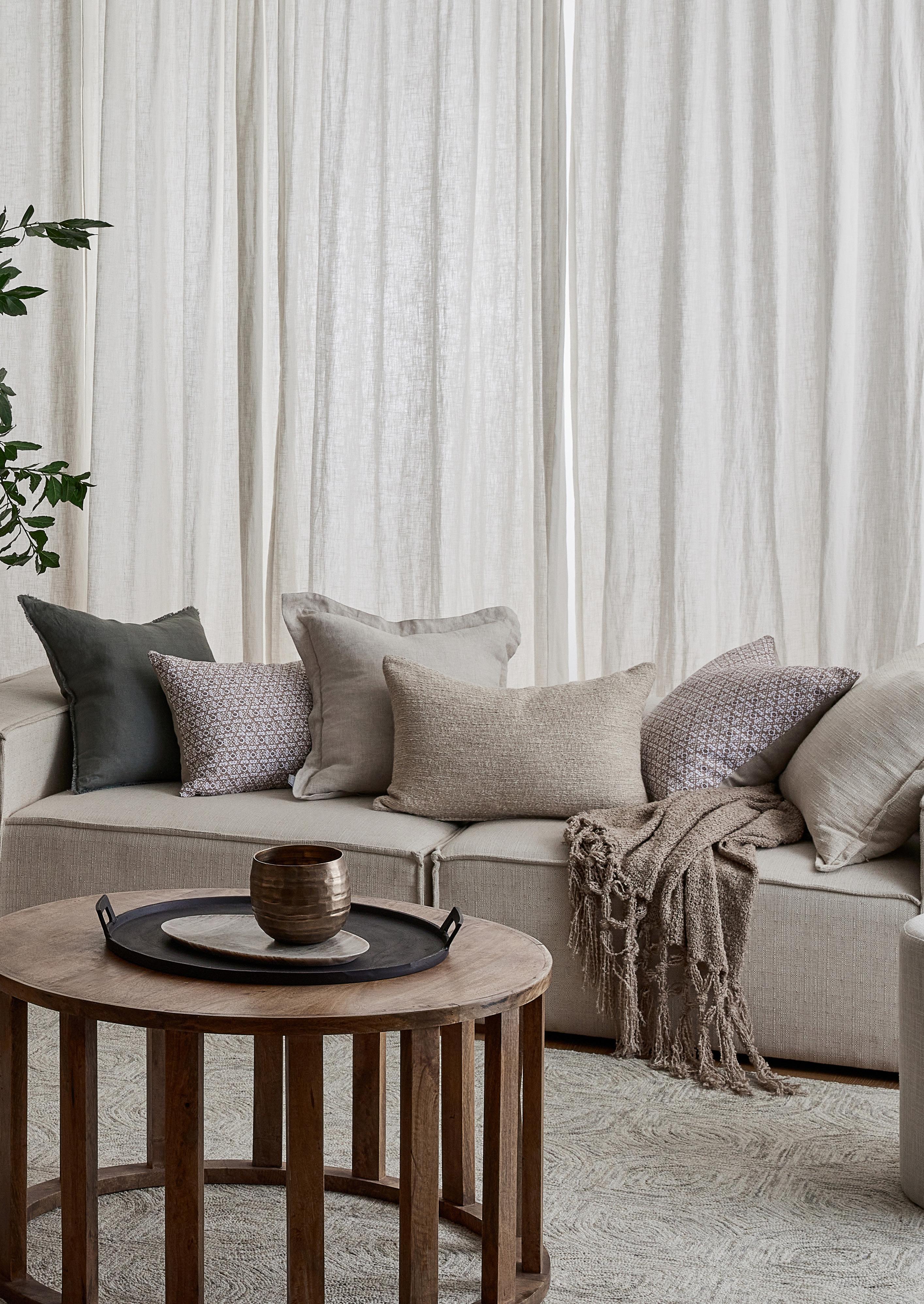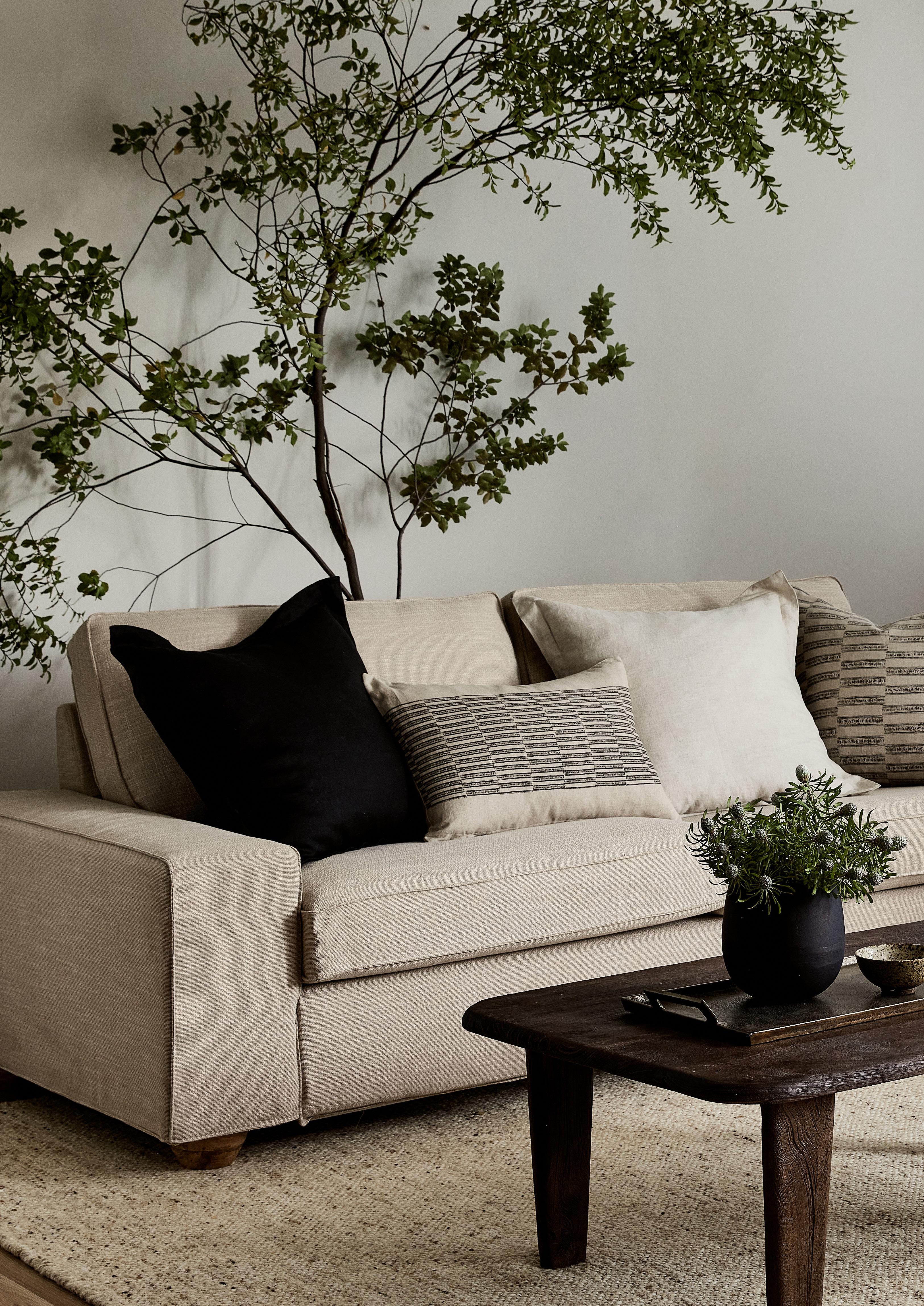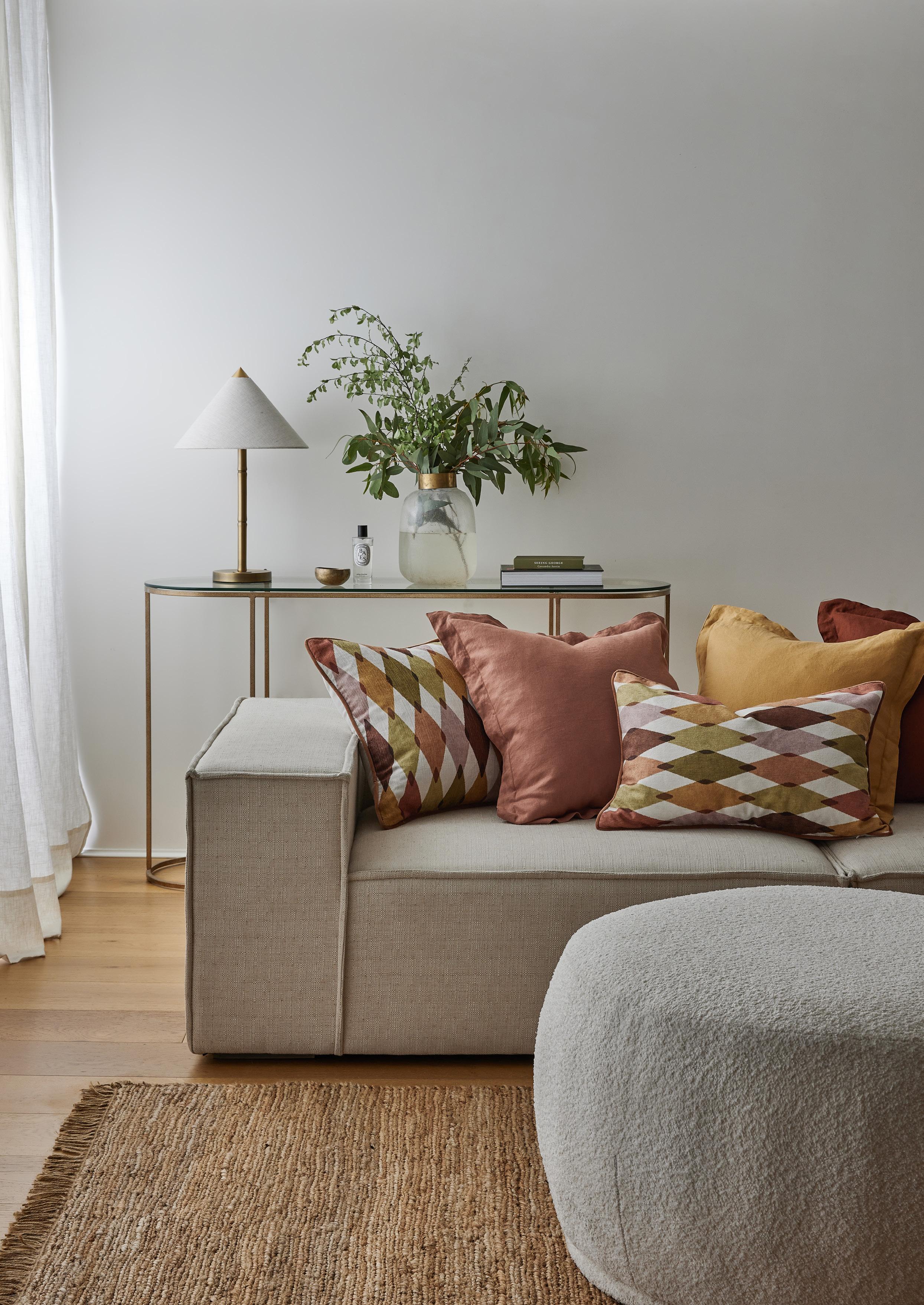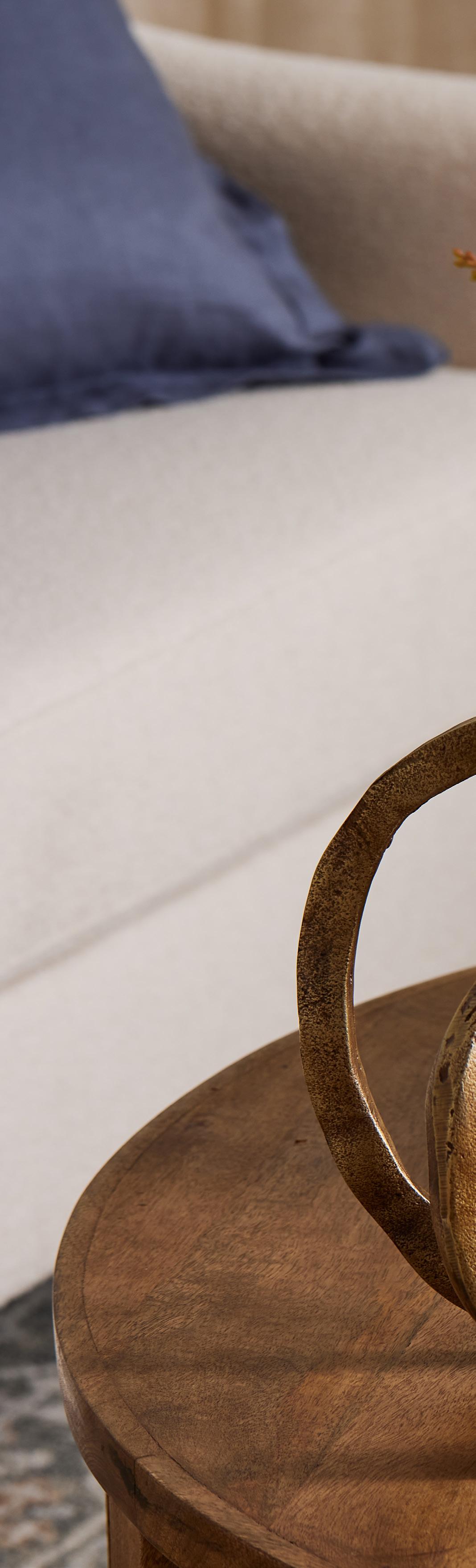 In the new Ivory by Madras Link range you’ll discover key pieces to build a unique interior. The Cyrus mango wood range invites effortless style to the home. It features a chunky textured wood with a sandblasted finish, perfectly complementing our new hand-painted linen cushions, hand-knotted wool rugs and marble accent pieces. The August upholstery range offers generous armchairs and timeless sofas in textured fabrics. Classic staples like the Carter, Ponte and Lawrence ranges offer sophistication through brushed brass with glass and mirror.