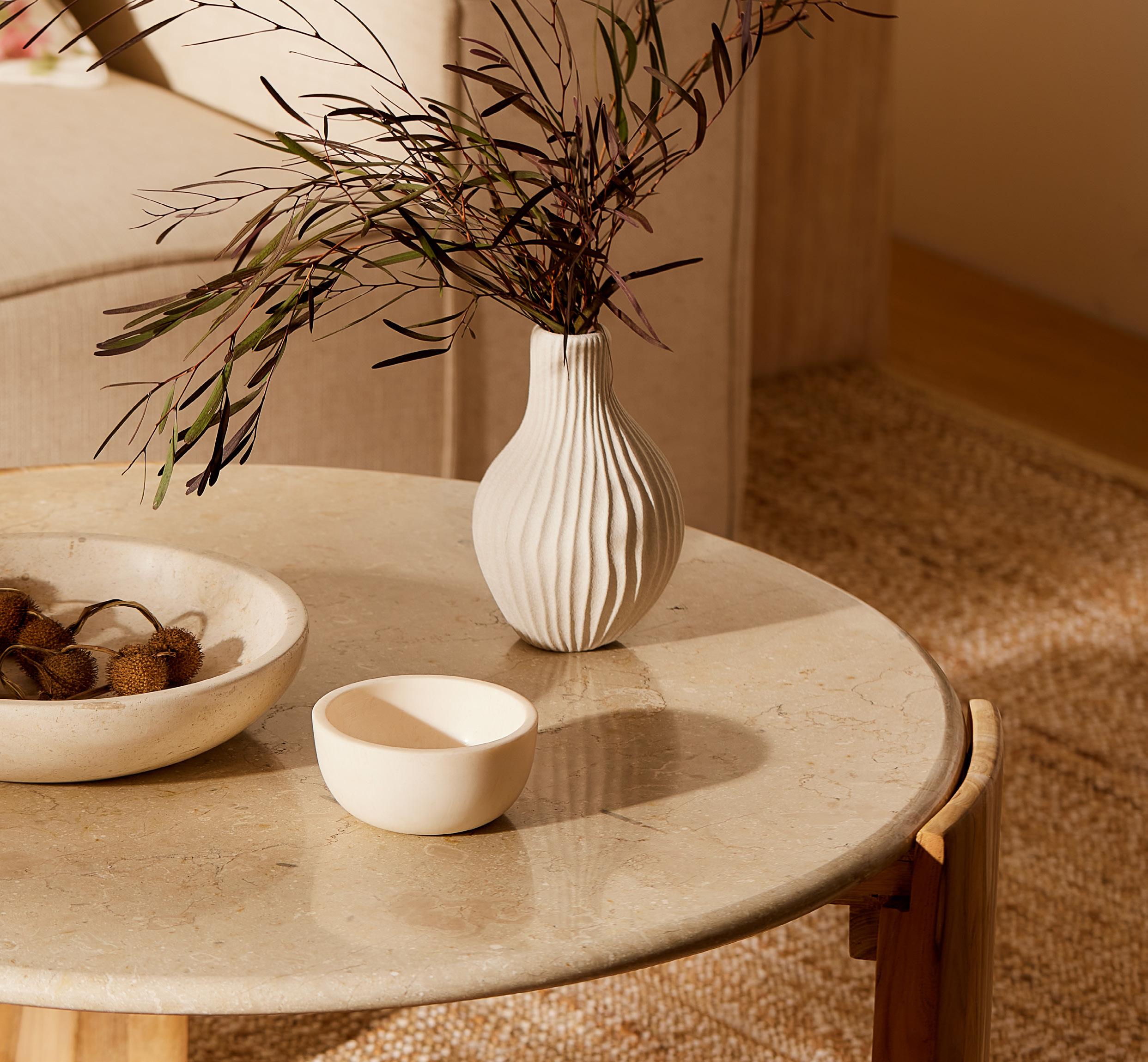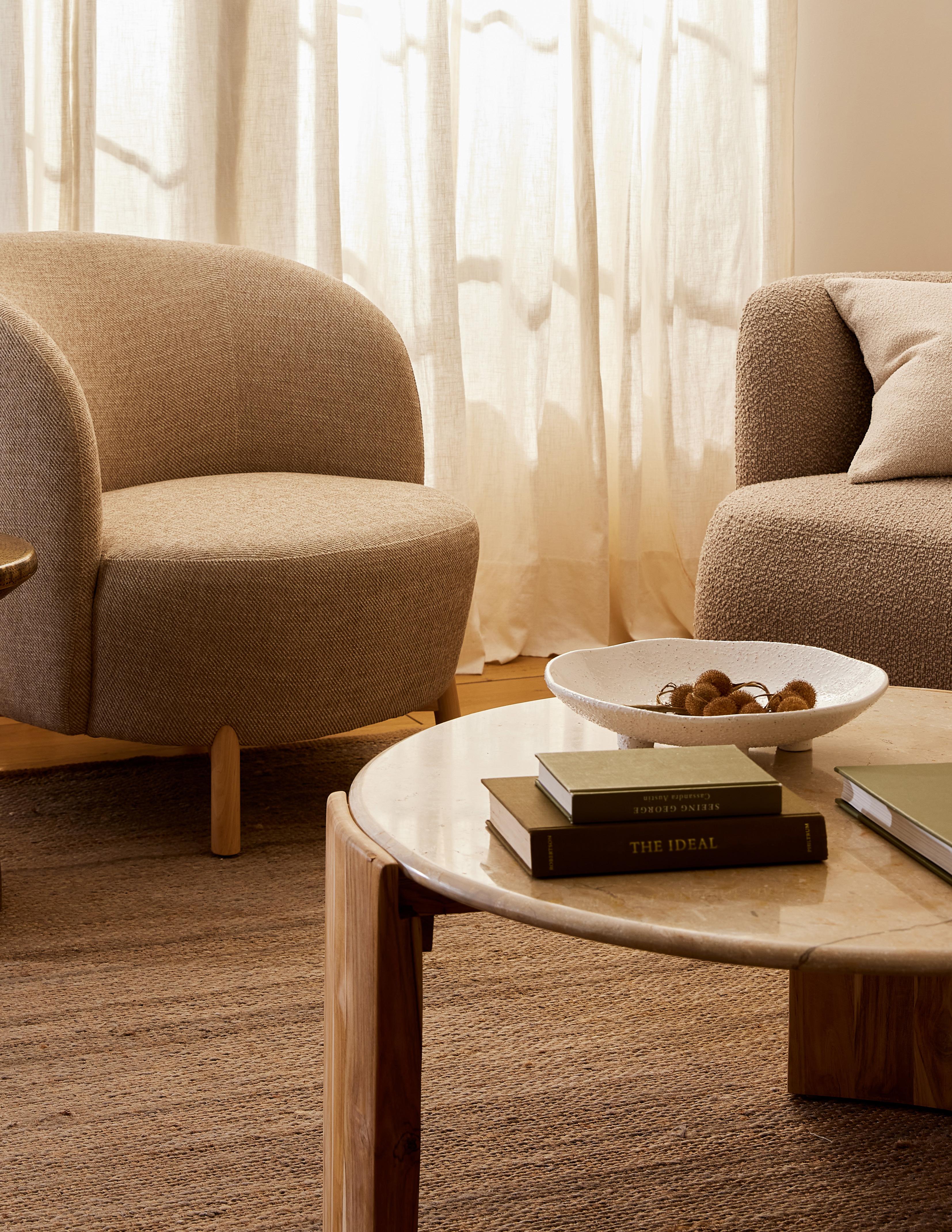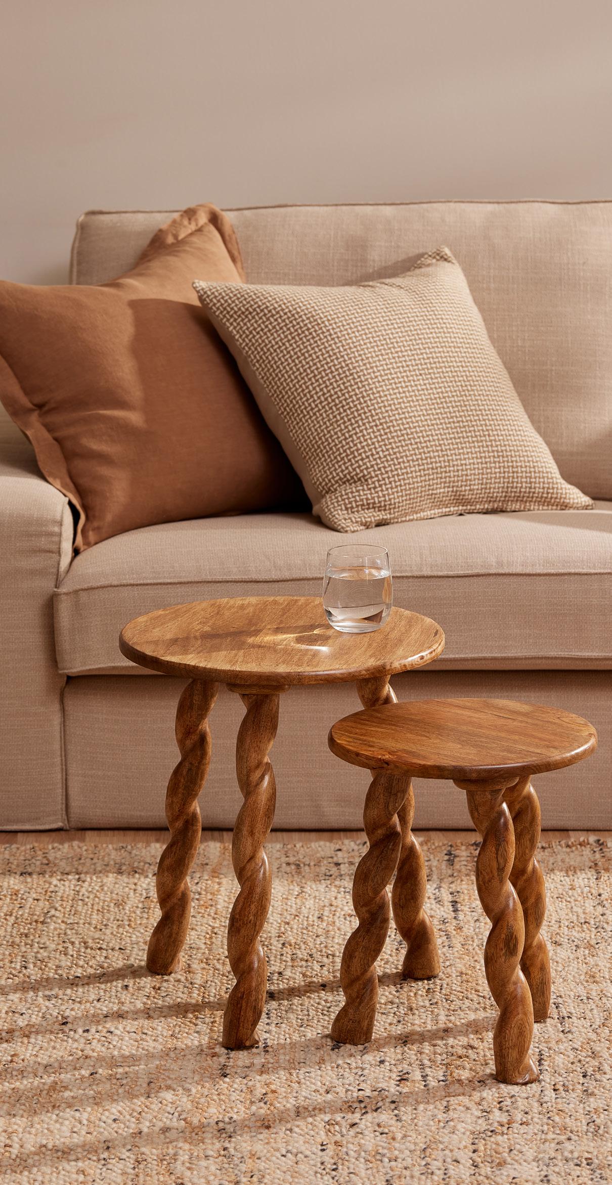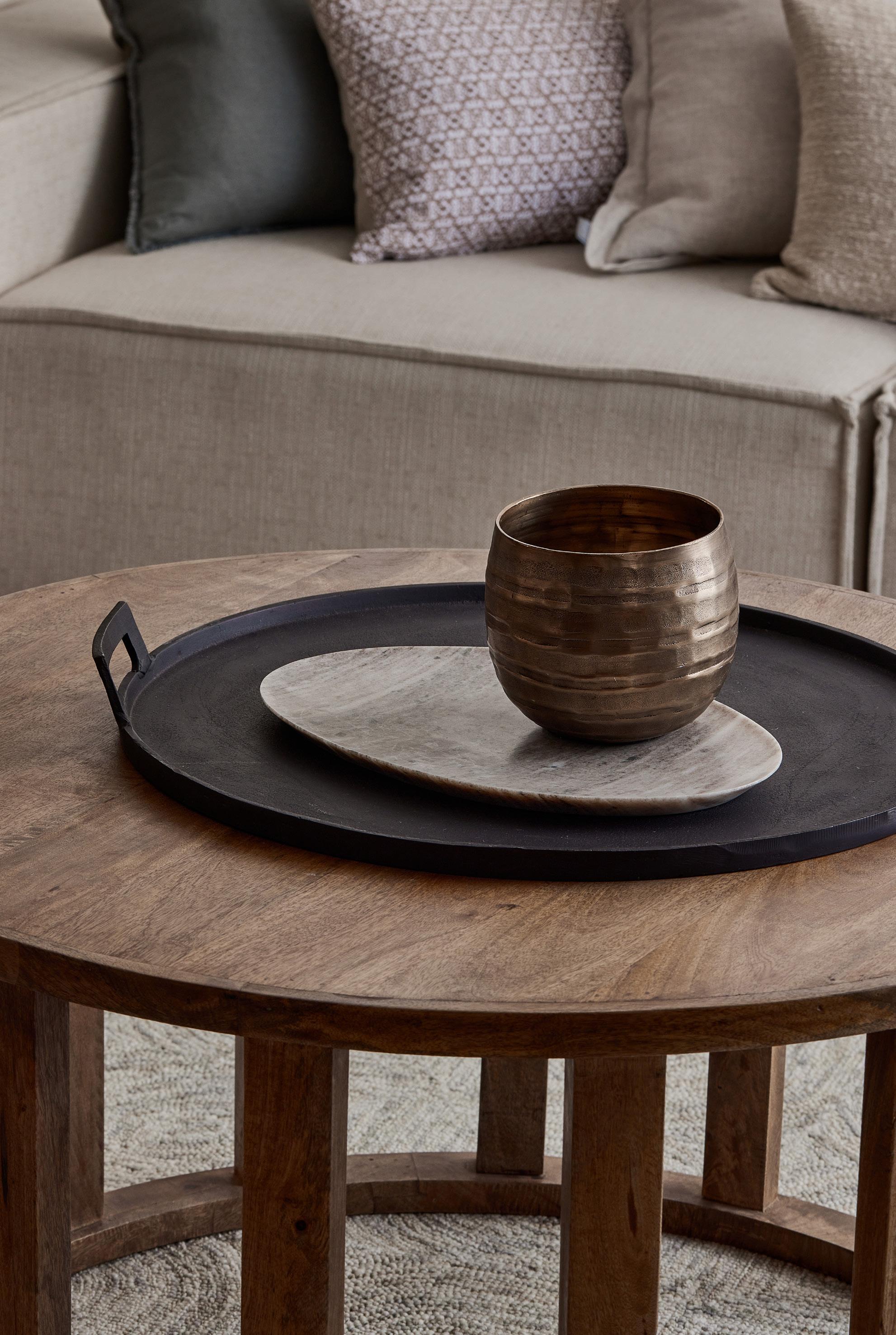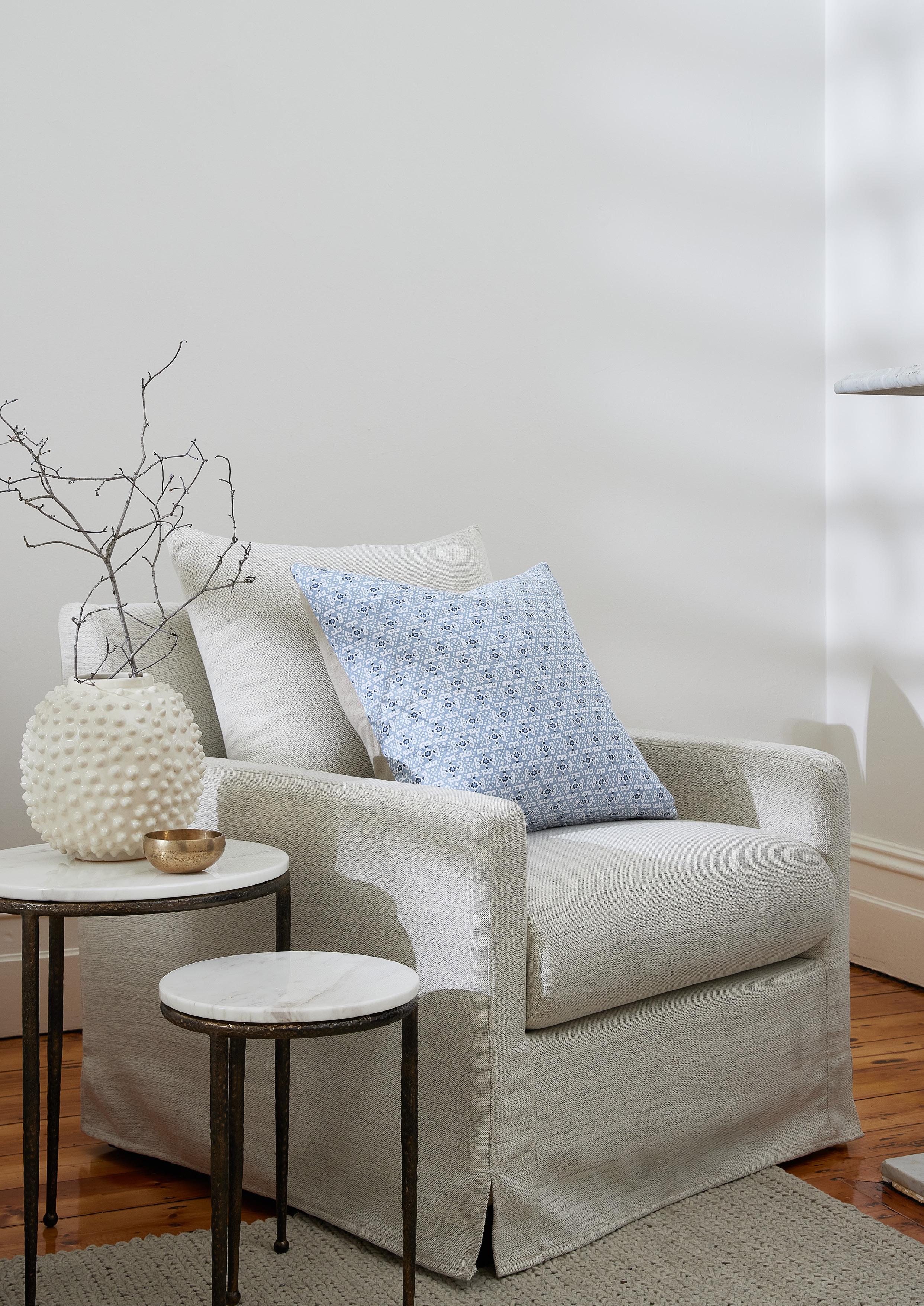 In the new Ivory by Madras Link range you’ll discover key pieces to build a unique interior. The Cyrus mango wood range invites effortless style to the home. It features a chunky textured wood with a sandblasted finish, perfectly complementing our new hand-painted linen cushions, hand-knotted wool rugs and marble accent pieces. The August upholstery range offers generous armchairs and timeless sofas in textured fabrics. Classic staples like the Carter, Ponte and Lawrence ranges offer sophistication through brushed brass with glass and mirror.