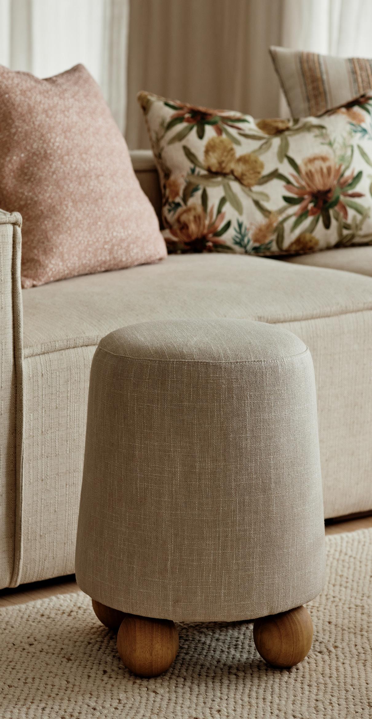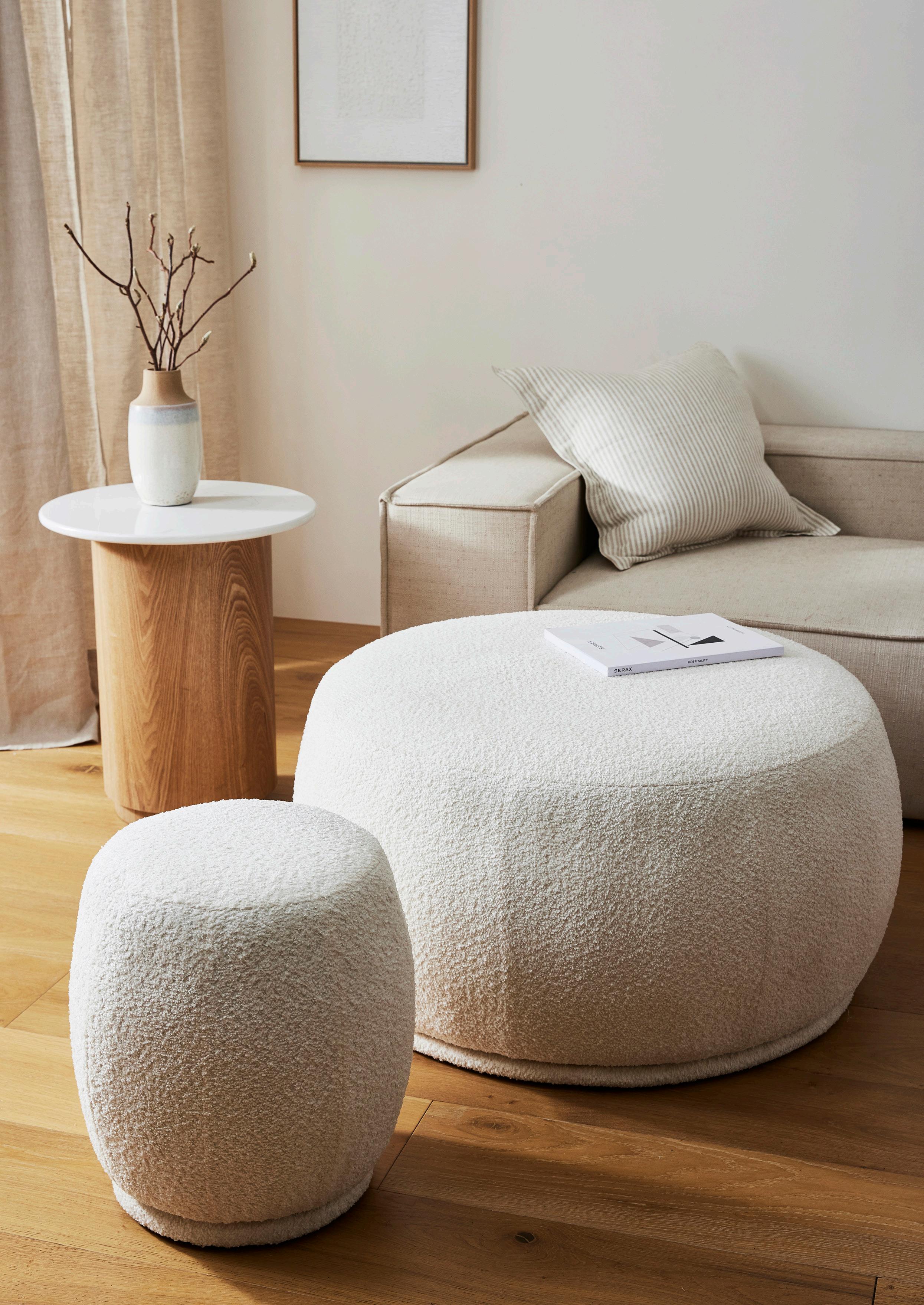 Linen Oat Ottoman D45x48cm (1) Textured Linen-Look Polyester