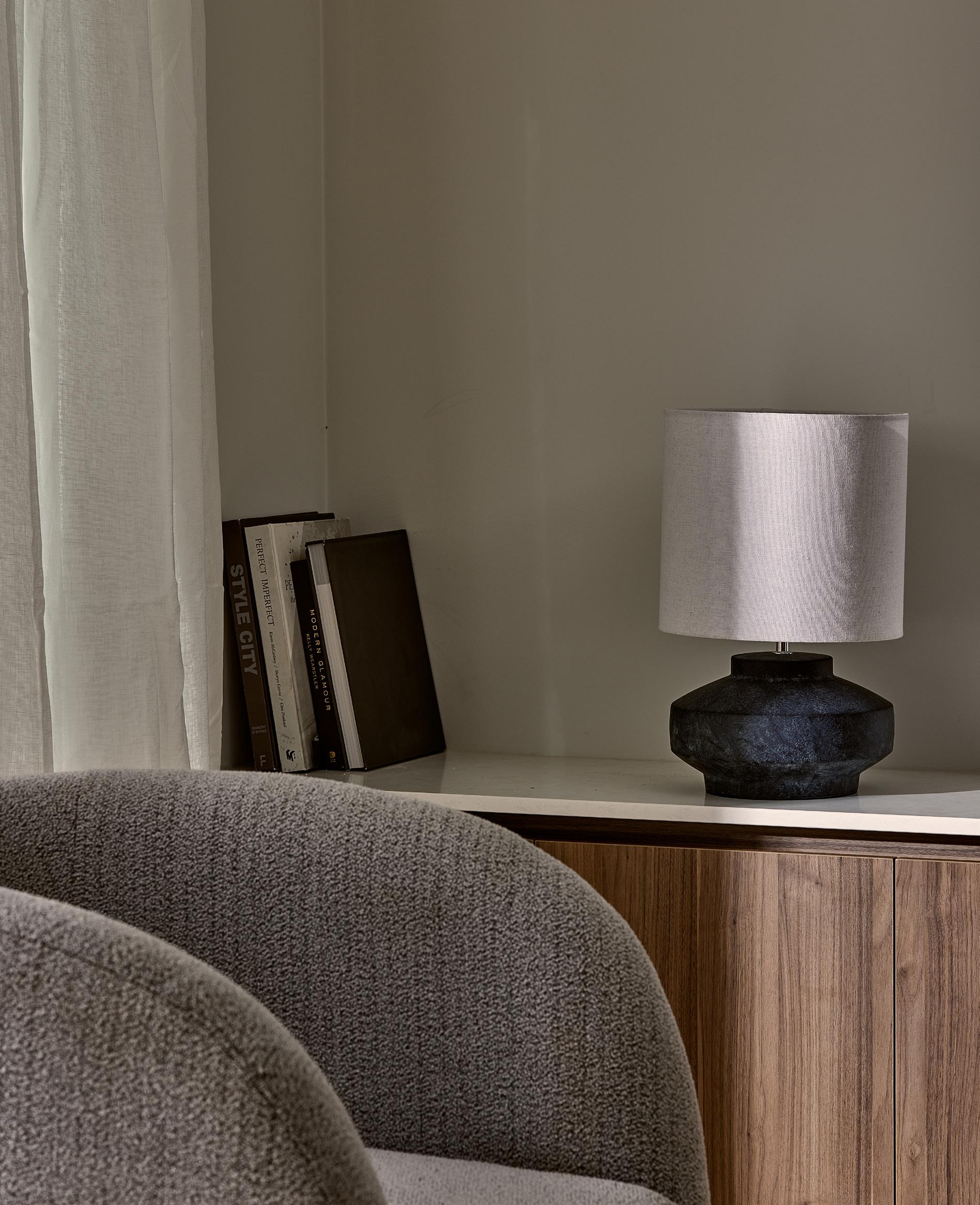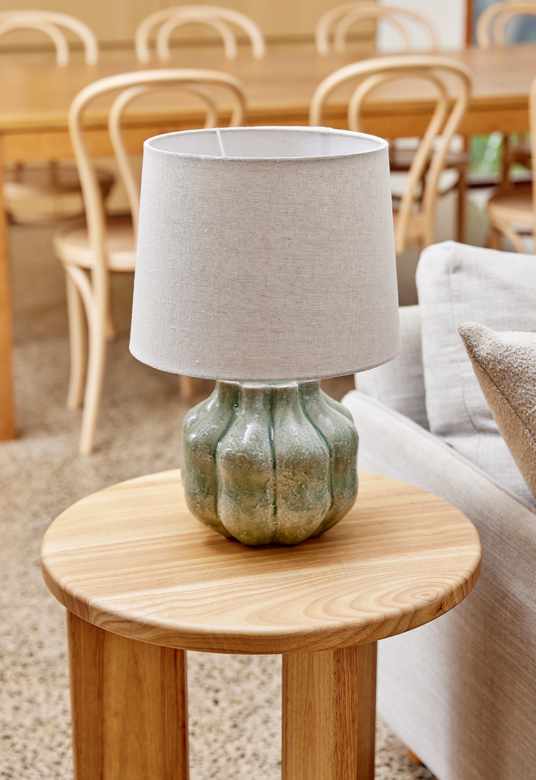 Sand Table Lamp D38xH48cm (1) Ceramic lamp base and linen shade
