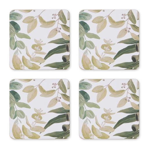 24W040 FRANKLIN GREEN SQUARE COASTER SET 4 10X10CM (3)COATED MDF WITH CORK