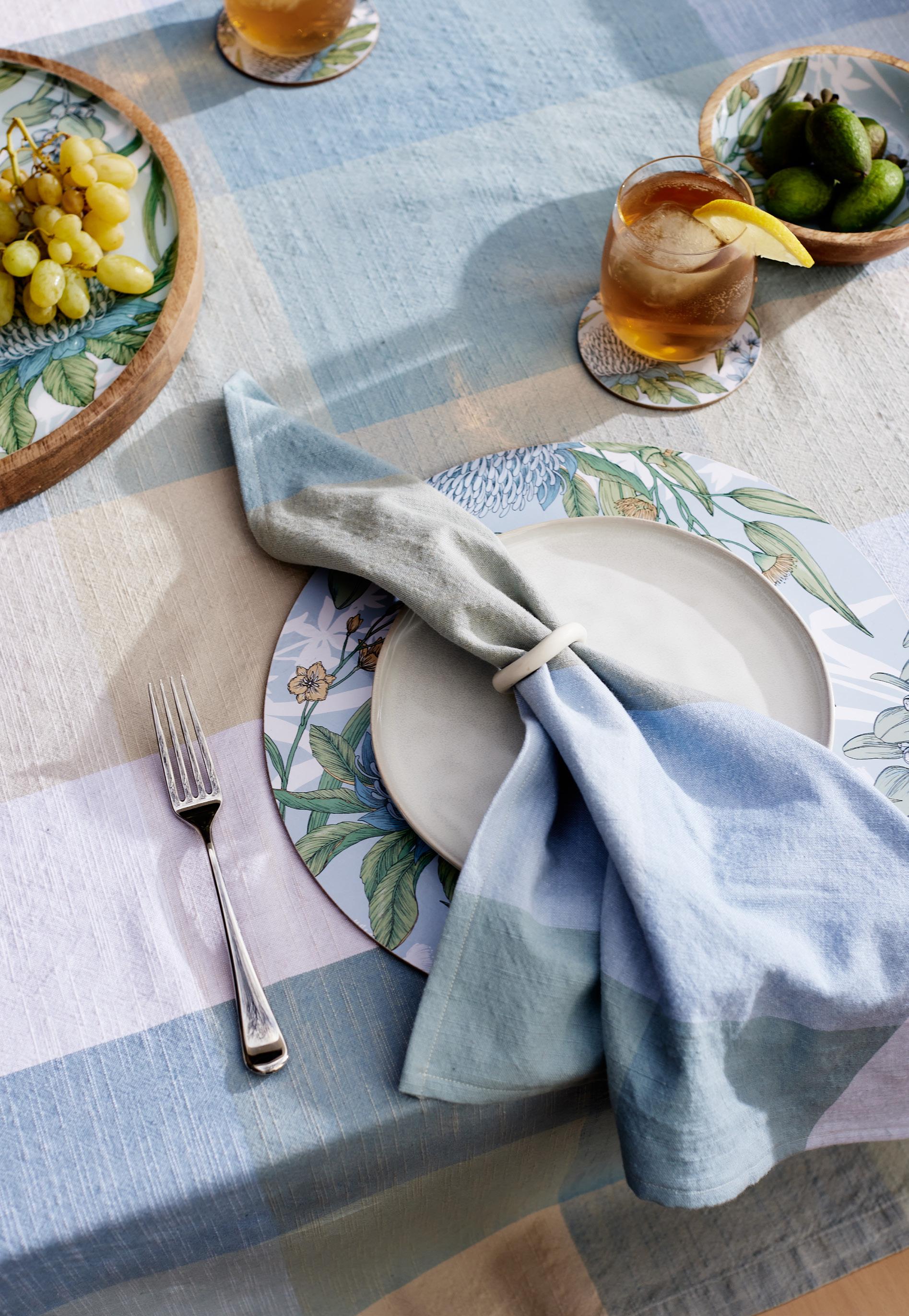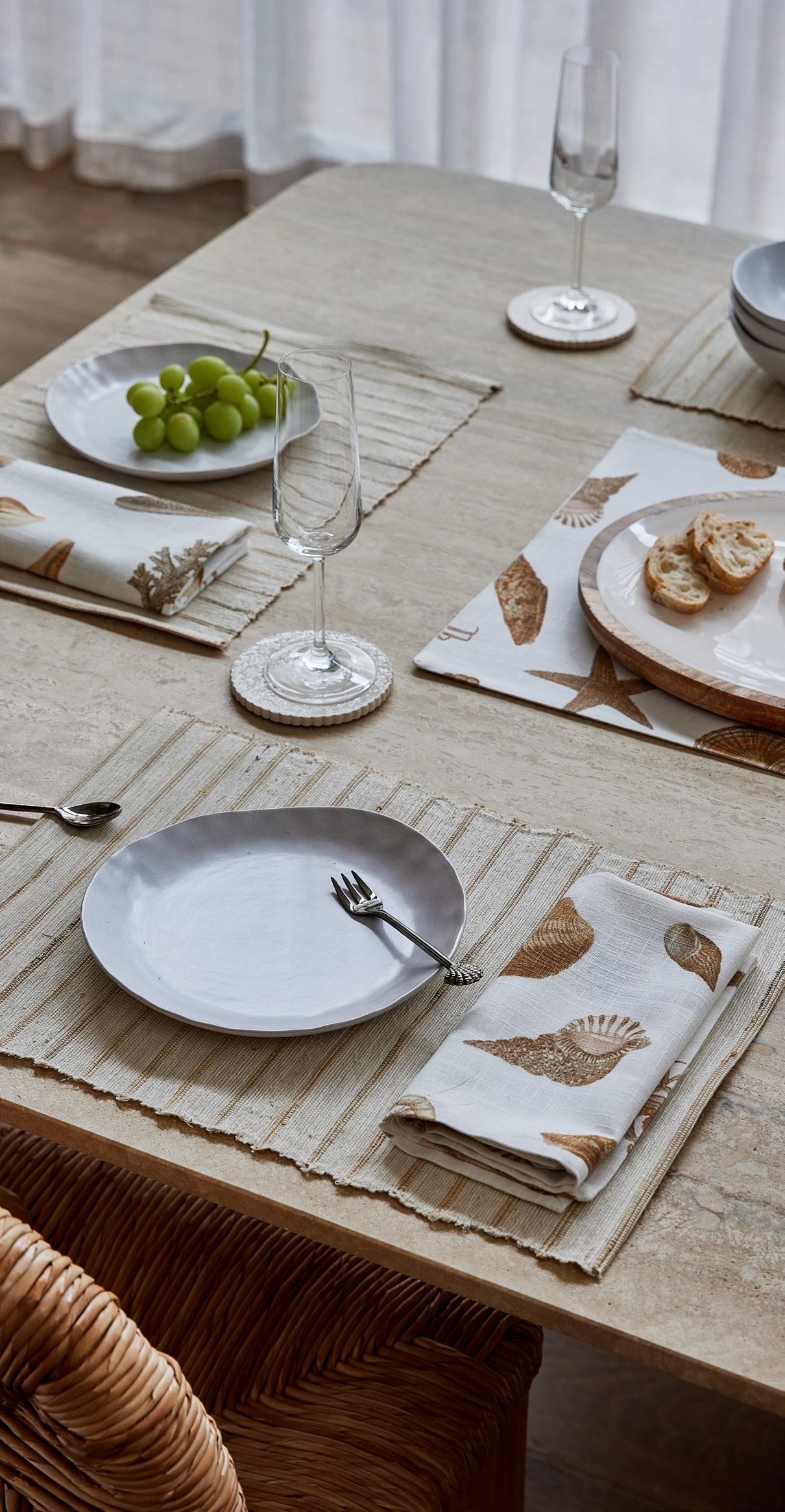 Our summer cushions include striking hand-painted florals combined with hand wood-blocked designs in soft tones of blue, seafoam and green. They pair seamlessly with our range of woven checks, stripes and textured plains creating endless layering options for your customers. The furniture offering includes a striking coffee table made from marble and teak, a variety of functional and stylish bedside tables, textured upholstered bedheads, hand-beaten occasional tables, and much more. The napery collection showcases our signature prints with a range of large woven multi-coloured checks that coordinate with our much loved mango wood and enamel tableware range. Additionally our new tabletop resin range includes a wide array of shapes and sizes in timeless sage green and on-trend blush pink. Whether your store combines the classics or you look for something more contemporary, our Summer 24 range of exclusive designs will continue to delight your customers season after season.