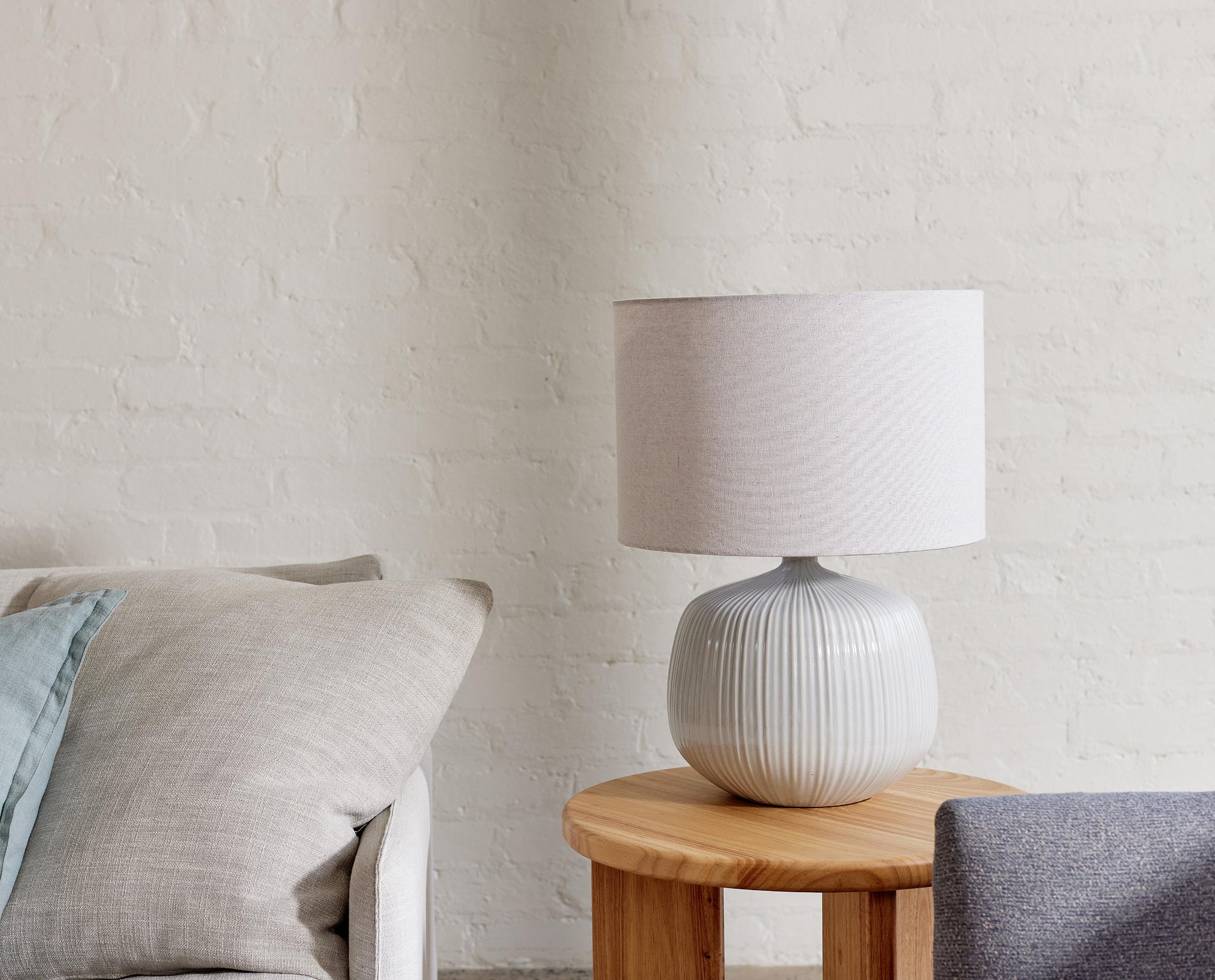 Cream Table Lamp D50xH51cm (1) Ceramic lamp base and linen shade