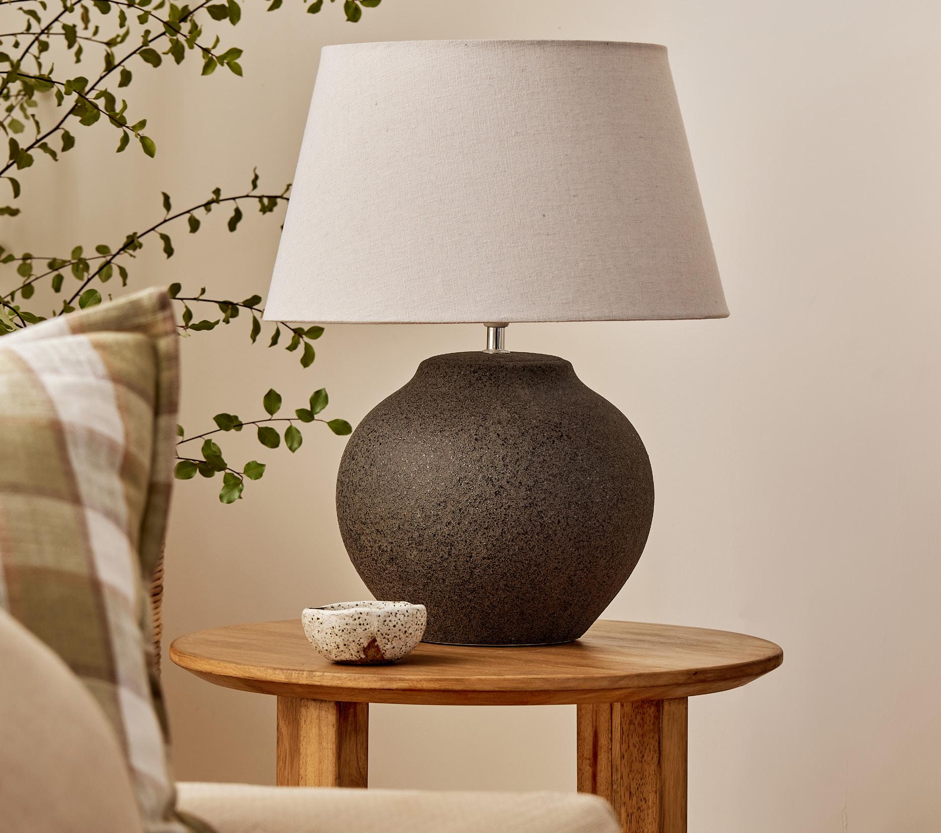 Black Ceramic Table Lamp D45xh47.5cm (1) Ceramic lamp base and linen shade