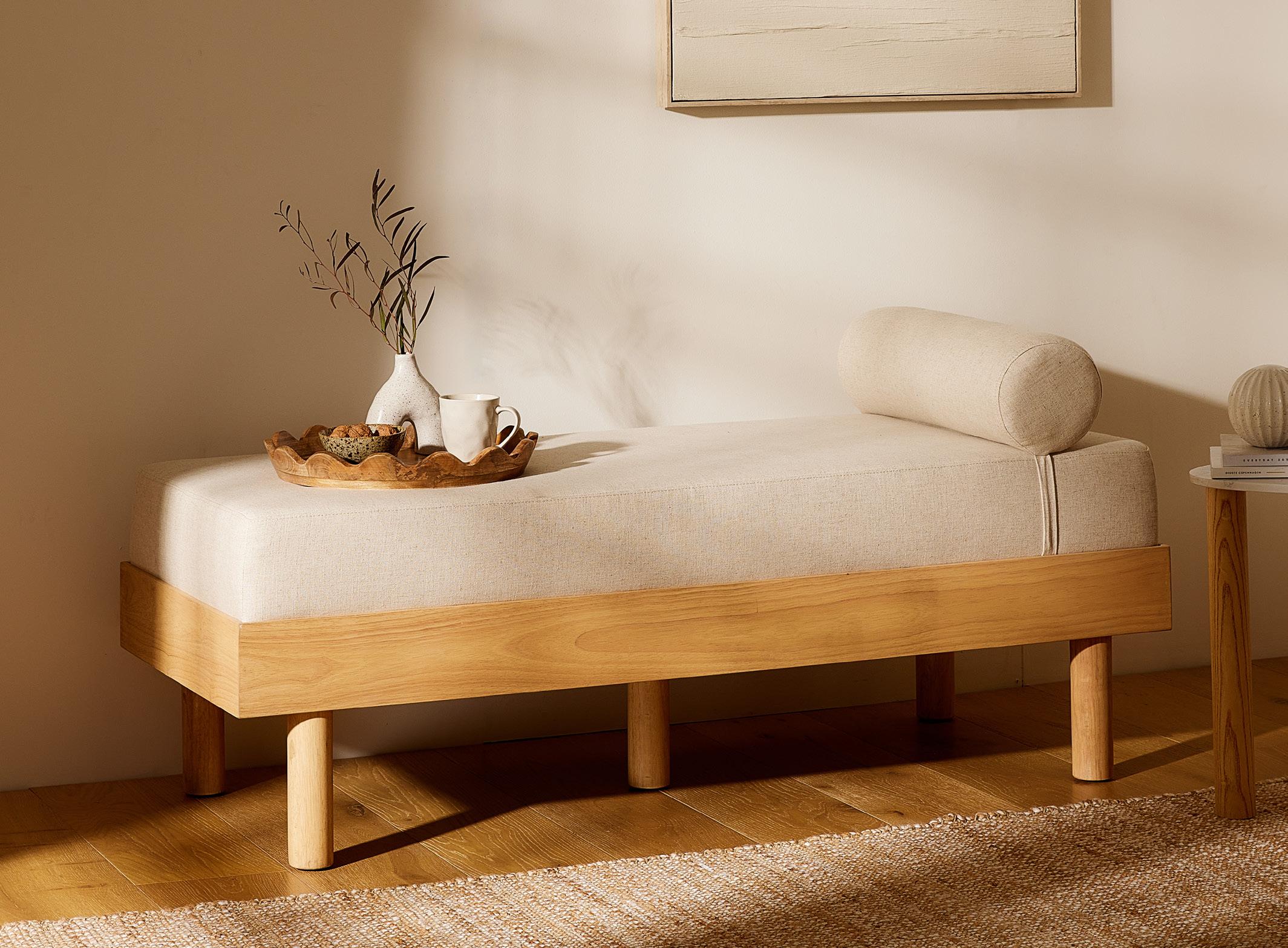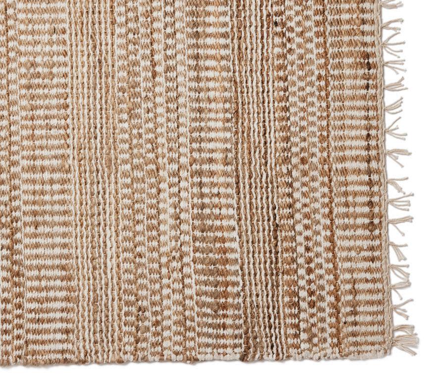 Natural Stripe Ottoman 110x60x45cm (1) Wood frame with linen blend upholstery