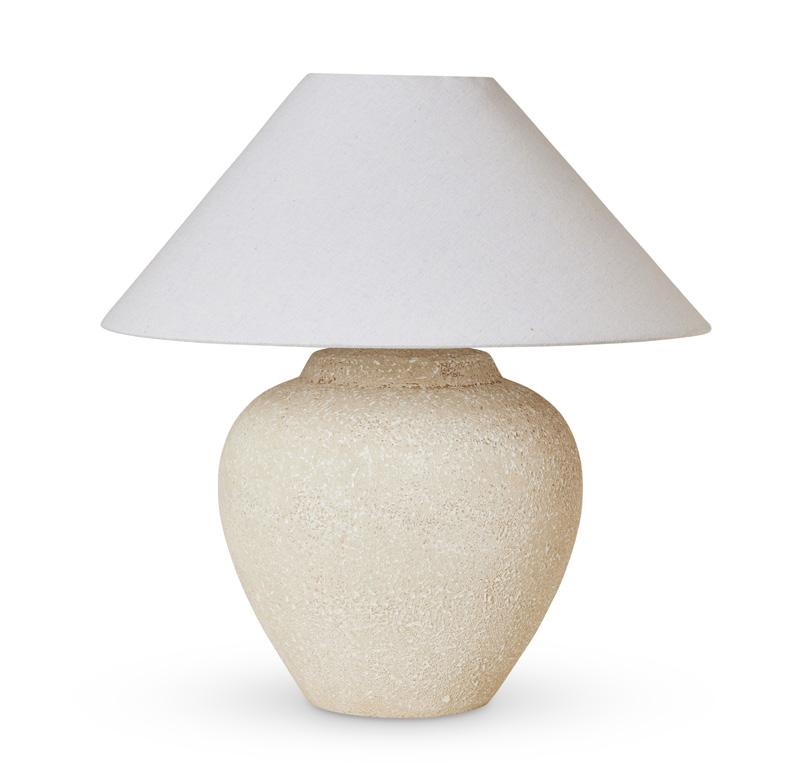 Stone Table Lamp D43xH64cm (1) Ceramic lamp base and linen shade