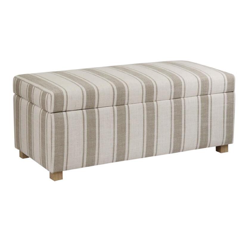 Taupe Stripe Storage Bench 110x50xH45cm (1) Wooden Frame/ Linen Blend Upholstery