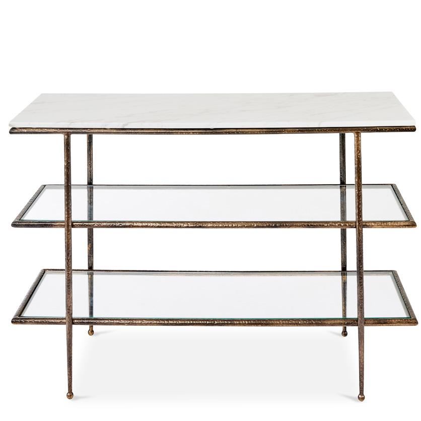 Gold/Marble Console with Shelves 112x40x76cm (1) Metal/ Marble & Glass