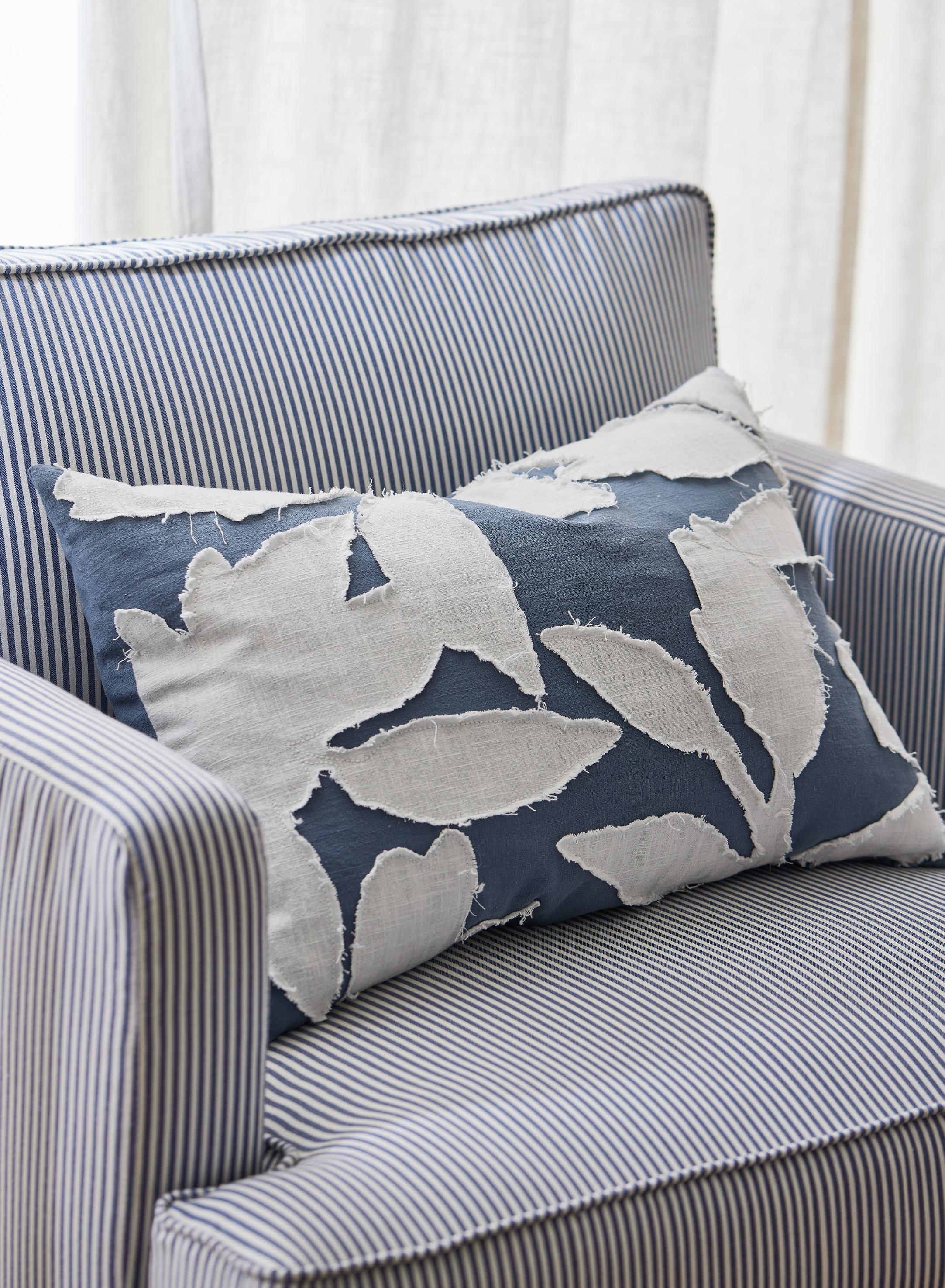 24S176 GLENELG WHITE/BLUE CUSHION 40X60CM (2) RECYCLED POLYESTER / LINEN