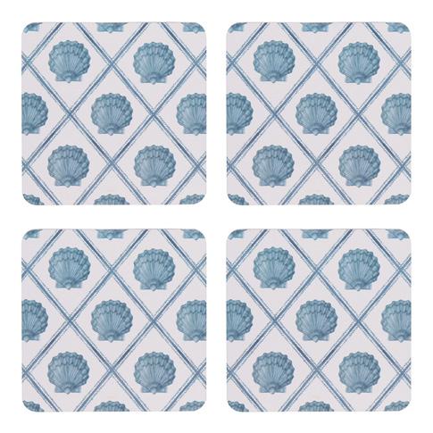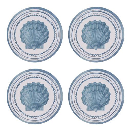 24W046 SHELLY BEACH ROUND COASTER SET 4 10X10CM (3) COATED MDF WITH CORK