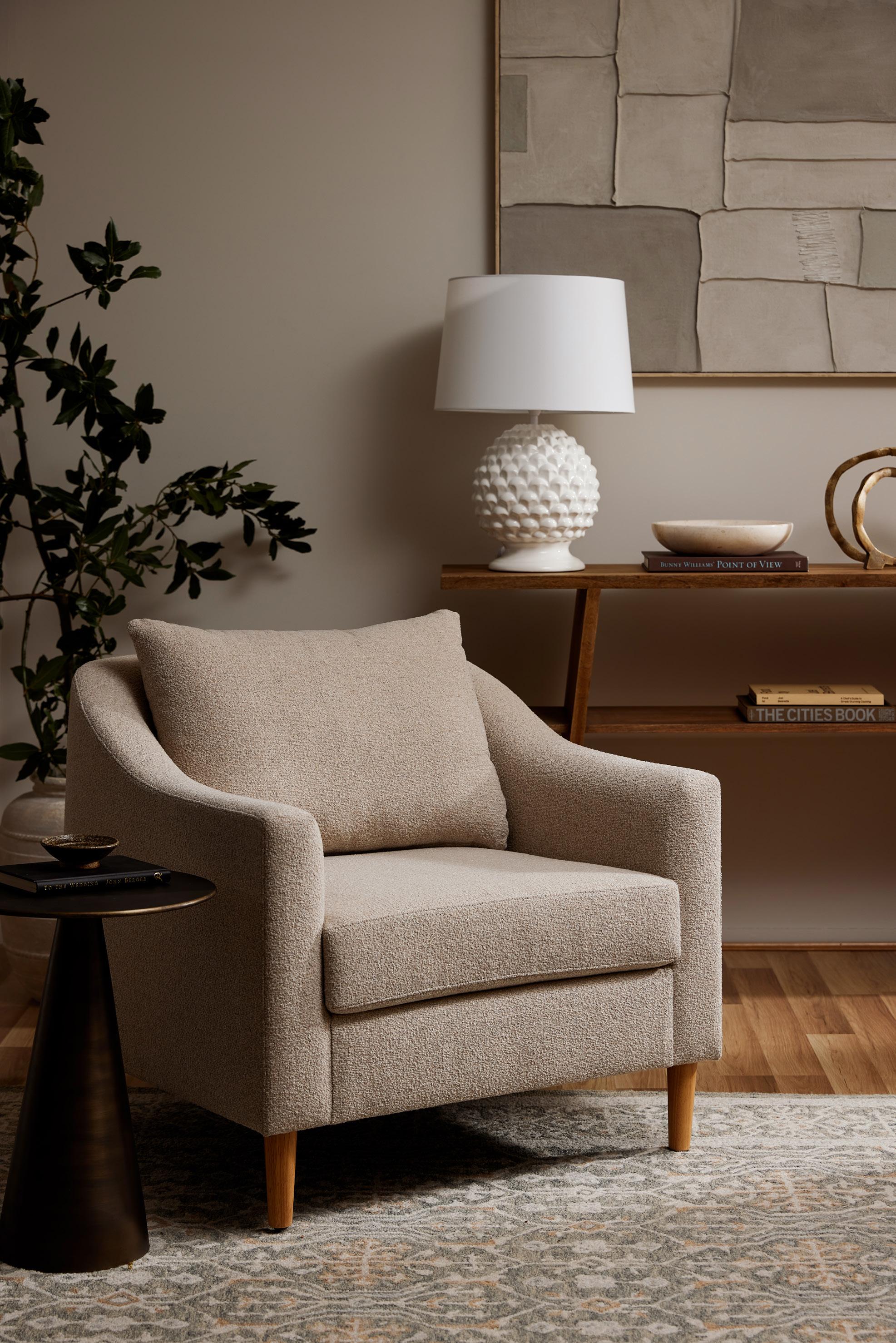 Curved Latte Occasional Chair 85x82x77cm (1) Wood Frame/ Polyester Upholstery