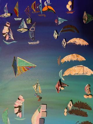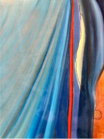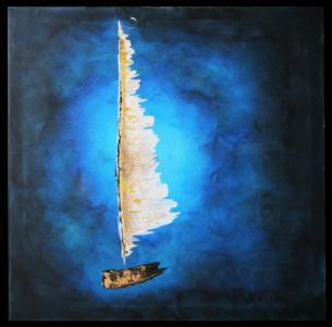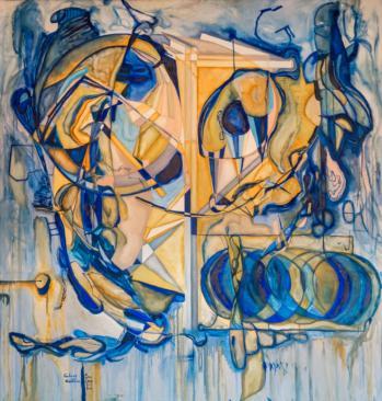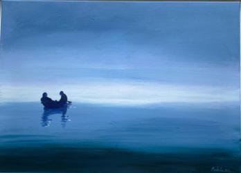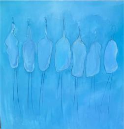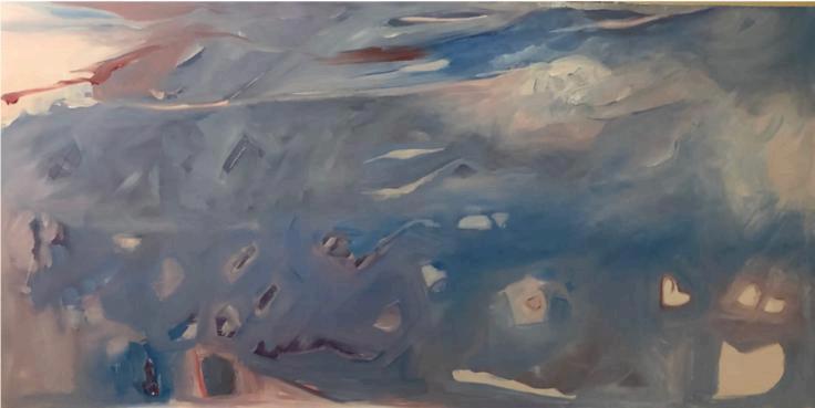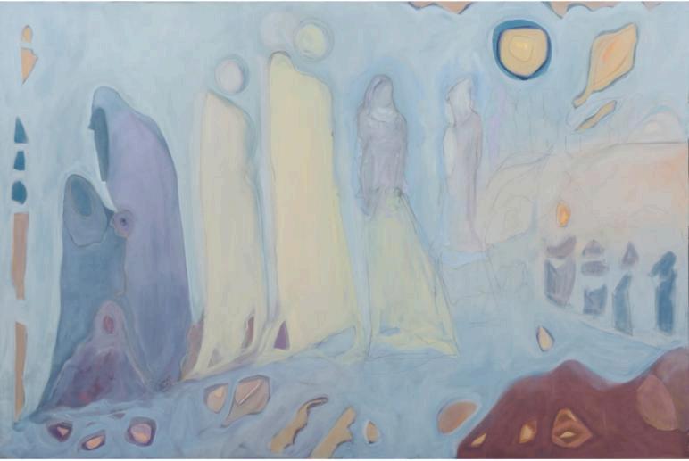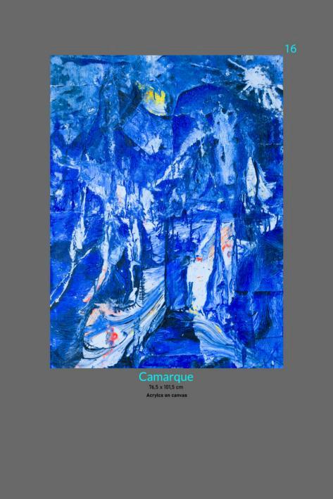 abstract landscapes alone. They are inner dramas that move toward light, silent affirmations that beauty and claritymayyetemerge Blue,thecolourofdistanceand thought, becomes alive and tactile, resonating with quieturgency.Acrossalloftheseworks,oneobservesa coherent and deeply personal vision Van De Winkel does not merely embellish She constructs a symbolic vocabulary,analphabetofintuitionanddiscipline The loombecomesasacredsitewherememory,resistance, andartisticgesturemeet Forher,weavingaffirmsthe persistence of meaning in a fragmented world It reminds us that even in shadow, a line continues its path, a circle quietly completes its course, and blue remains to surround us with presence, warmth, and clarity