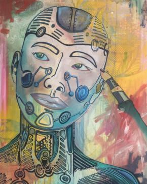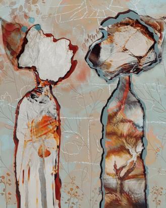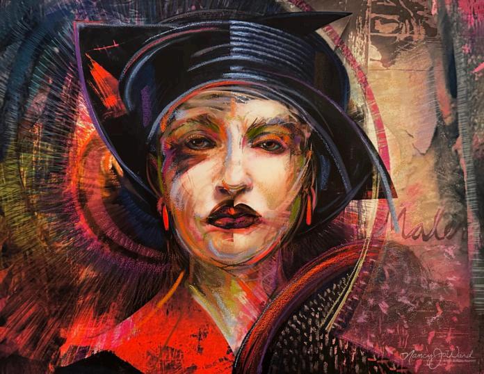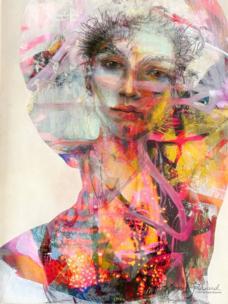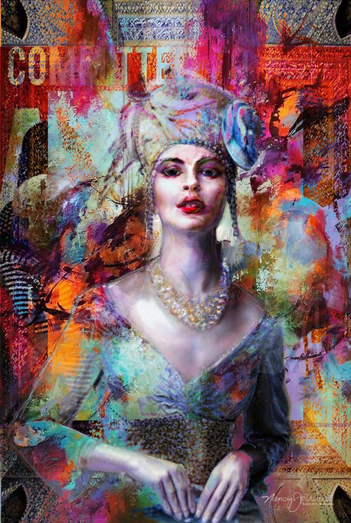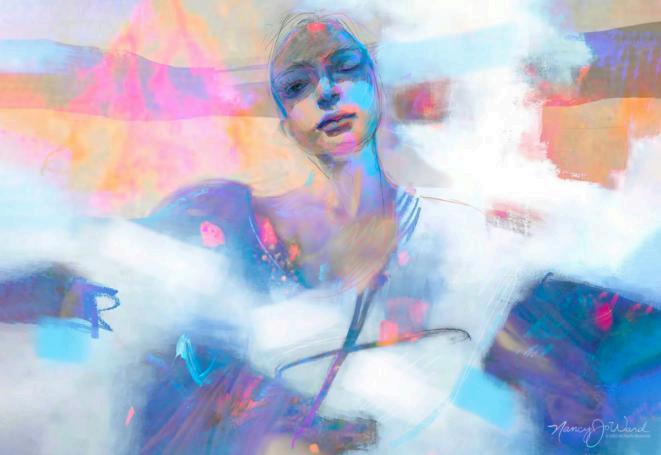 Nancy Jo Ward, a distinguished American media artist residing in Santa Maria, CA, hascultivated a career marked by experimentation with mixed media and technology Born in1957 in Dayton, OH, Ward is an alumna of the School of Visual Arts, New York, NY (1980),and achieved her MFA in Fine Art Digital with Distinction from the University of Arts London,Camberwell College, UK, in 2018 Ward’s artistic practice delves into the realms of psychological portraiture, skillfully navigating the intersections of gender, beauty, and emotion Her adept construction of compelling a spectrum of emotions from profound loss and grief to moments of comfort andcuriosity Employing a hybrid methodology, Ward deftly intertwines form and process, drawing inspiration from the convergence of contemporary art technologies and traditional tools Herwork mirrors the unexpected intersections inherent in conversations, inviting viewers into avisually rich dialogue A distinctive facet of Nancy Jo Ward’s artistic approach lies in her experiential perspective Actively engaged in the collection, curation, and crafting of reconstructed memories, her practice resonates with a profound sense of depth Her exploration extends into the aesthetics of postinternetculture, weaving in references to graffiti, social media, socialactivism, and pop culture This thematic tapestry finds eloquent expression through her masterful use of color, texture, and movement The fusion of digital and analog techniques transcends conventional figurative traditions, offering a contemplative exploration of the pervasive influence of media culture and its transformative impact on identity Wards physical works feature collage, drawing, painting, and printing onto diverse substrates such as aluminum, archival paper, and crystalline-coated polymer The inclusion of analogmedia and metallic foils