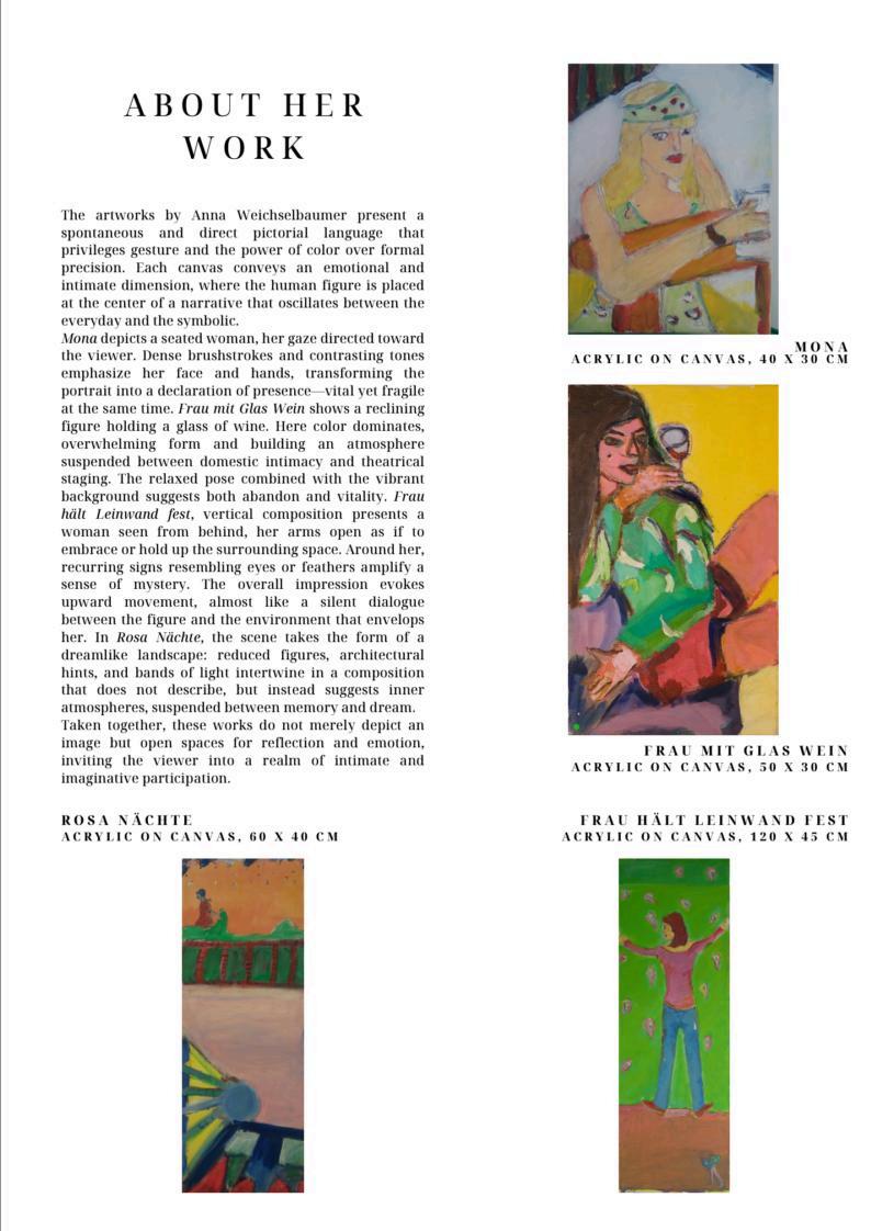 A voice of observation and emphasis, carried by a mindful gaze She gives voice to forms in order to reveal what artists carry within, driven by a love for art and by the curiosity to discover the human being in its finest expressions Curator and critic, yet also mediator, she observes, understands, and translates emotions and meanings into a clear language that can reach everyone Her work exists between creativity and communication, between depth and concreteness She is a bridge between those who create and those who look, between those who dream and those who listen With a degree in Art History and Cultural Heritage Management, she has worked for artists since her very first position She is the mind behind the 2025 exhibition series The Metamorphosis, and creator of the Spotify podcast on contemporary art M A D S Artworld by Mara Cipriano