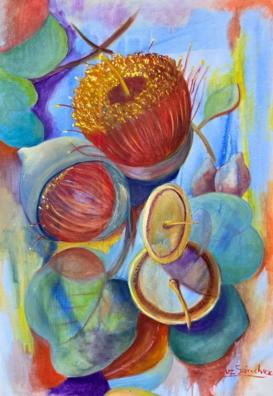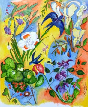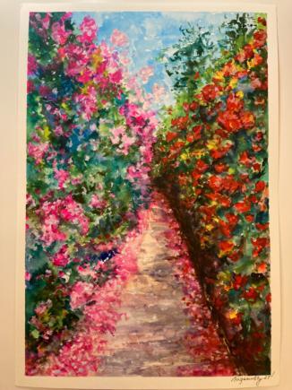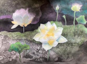 Yuriko Sasaki was born in Saitama Prefecture From a very young age, she loved drawing and often spent her free time doodling In middle school, after receiving praise from a classmate known for their drawing skills, she began to take art more seriously Her artistic journey truly started with the wish to heal herself and others who have experienced the loss of a loved one Her main exhibitions include the 2010 Mini Exhibition of Original Works at Design Festa (Tokyo), the 2015 Glamorous Watercolor Exhibition (Tokyo), and being selected as a winner at the 156th National Nichizu Exhibition, among others Yuriko primarily works with transparent watercolor and pencil, sometimes incorporating oil pastels Her style is abstract, often featuring floral motifs, and is described as mysterious, evoking curiosity and inviting viewers to search for hidden meanings Through her art, she seeks to express emotions and imagined worlds, creating works that resonate with sensitivity and provoke reflection