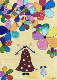 Dorothea Van De Winkel lives in the center of the town of Oudenaarde (Flanders, Belgium), a historic city renowned for its ancient handwoven tapestries She was very impressed by the skills needed and the fine art behind this craft. From this background, she started searching for and collecting any information she could find on materials (wool, silk, ), tools, colors, and patterns She wanted to know everything about it, from design to realization After a solid education in this art form locally and later abroad at the Ecole Nationale d’Art Décoratif in Aubusson, France, she began creating her own designs and weaving cartoons in a modern style, according to her feelings and emotions of the moment Starting from a pencil sketch, in various shades of grey but often colored, the pencil lines are maintained in the realization of the tapestry