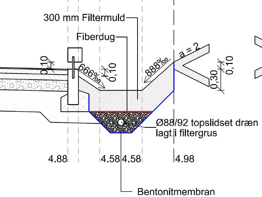 I et samarbejde mellem bygherre, myndighed og NIRAS, fandt vi, i en proces over flere rul, på at etablere traditionelle LAR-bede, men med den forskel, at bedene er opbygget med en tæt membran i bund og sider.