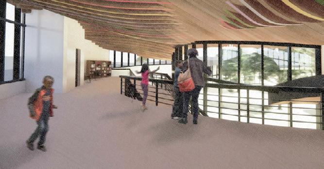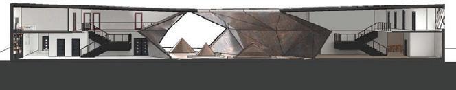 The north side of the building consists of a series of work spaces, with a lab for the ecologists and a grinding room for the lapidaries. The second floor has collaboration space to produce a joint final project.